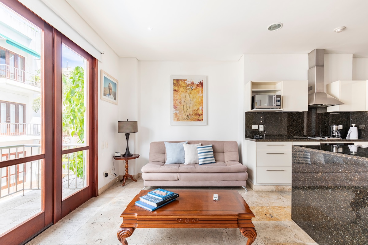 1 BR Loft Suite v osrčju Cartagene, ki ga navdihujejo nekateri najboljši hoteli s 5 zvezdicami na svetu. Nahaja se znotraj zidov starega mesta, v bližini trgovin, razvedrila, restavracij, nočnih klubov in barov. Uživajte v bivanju v tem mestu Unesco Heritage, polnem zgodovine in razburjenja. Popolnoma opremljena kuhinja s pralnim/sušilnim strojem, zakonsko posteljo, raztegljivim kavčem z zakonsko posteljo, televizorjem, Netflixom in 300MbWi-Fi. Naše sodobno stanovanje na plaži je kot nalašč za par, da uživajo in se sprostijo.