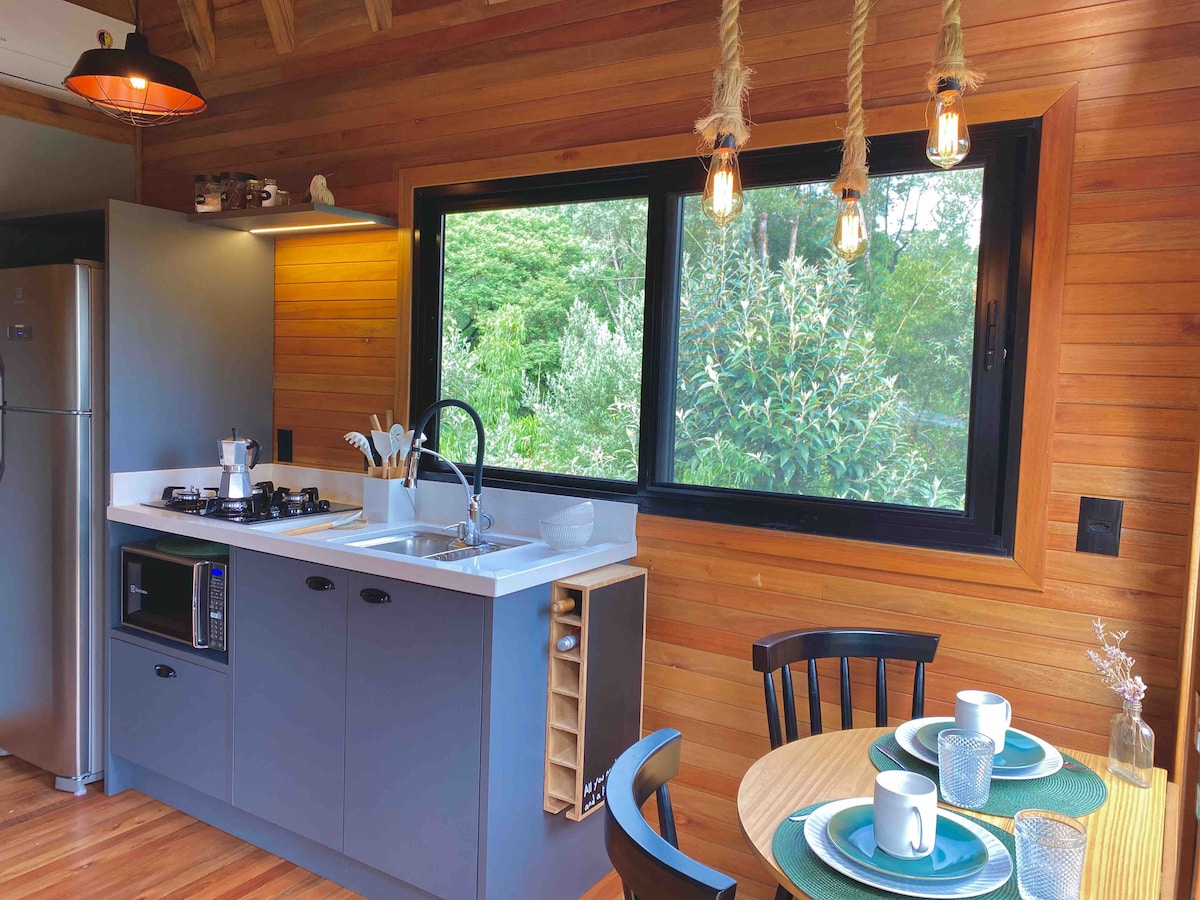 Nossa cabana é ideal para pessoas que buscam uma estadia de tranquilidade, aconchego e conforto. O ambiente integrado oferece requinte, praticidade e conexão com a natureza. Ao entrar, você será recebido por uma atmosfera acolhedora, com detalhes cuidadosamente planejados. Com o frio característico da região, o piso aquecido da cabana garante conforto térmico em todo o ambiente. As amplas janelas de vidro oferecem vistas deslumbrantes da natureza circundante, inundando o espaço com luz natural.