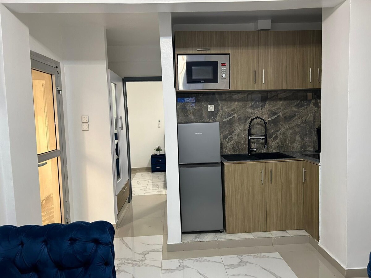 Dobrodošli doma❤️, v najboljšem prenočišču v Douali, ki smo ga zasnovali z vami in za vas, da boste imeli edinstveno, udobno, mirno in izjemno varno bivanje. Skrbimo za vaše dobro počutje, zato smo bivališče tako dobro opremili in zasnovali, da vam ne bo ničesar manjkalo. Zelo velika nastanitev v 1. nadstropju sredi ceste, v bližini trgovin, supermarketa ter prostorov za prosti čas in sprostitev 1 spalnica – 2 prhi (1 zasebna, 1 za goste) – 3 balkoni – parkirišče