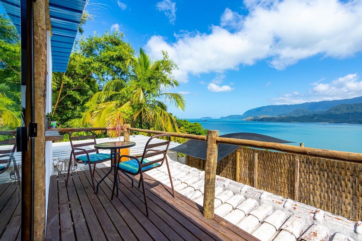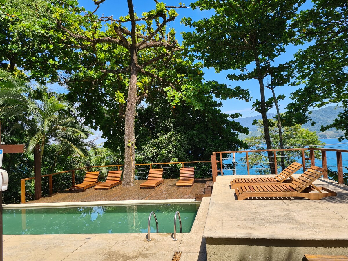 Chalé 1 minuta hoje od 2 plaž, idealen kraj za sprostitev in bližino narave Do plaž bomo dostopali po kopnem samo prek naše namestitve Za tiste, ki iščejo mir in zasebnost predvsem poleti, ko je na plažah gneča Nahaja se v ohranitvenem območju, kjer se nahaja Usp 's Marine Research Institute. Omejen dostop do namestitve in plaže za hišne goste in inštitut 10.000 m2 nepremičnine s čudovitim razgledom na Ilhabelo in sosednje plaže