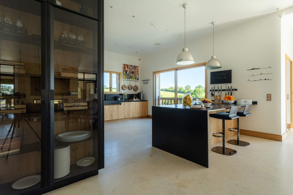 Uživajte v tej prostorni, okusno urejeni nastanitvi kot par, z družino ali prijatelji. Svetla hiška na deželi se nahaja 3 minute od Pont-L 'Evêque, 15 minut od Deauvilla, Trouvilla in Honfleurja ter ponuja neposreden in zaseben dostop do pokritega območja za sprostitev, opremljenega z jacuzzijem z video projektorjem. Nahaja se v mirnem predelu in vam ponuja opremljeno zunanjo teraso (dnevna soba, miza in žar) s čudovitim panoramskim in neoviranim razgledom. Zasebno parkirišče, Wi-Fi, obrnjen proti jugu, posteljnina je vključena.