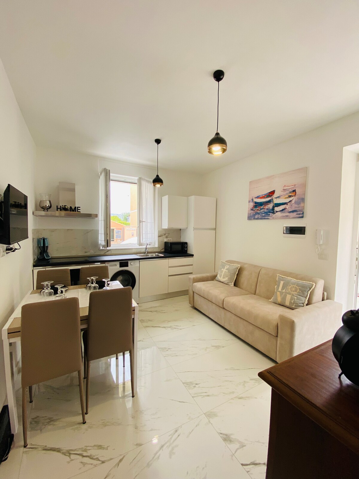 Sprostite se v tem mirnem in elegantnem prostoru. Bivališče je fino prenovljeno, v osrednjem območju, vendar hkrati mirno. Z odprtim razgledom, ki je zelo svetel, je idealno izhodišče za plaže (400 metrov) in naravne poti gradu Borelli/Monte Piccaro (800 metrov), pa tudi za gorske kolesarske pustolovščine (Finale Outdoor Region poti) ali za obiske čudovitih srednjeveških vasi v zaledju in njihovih... restavracij!