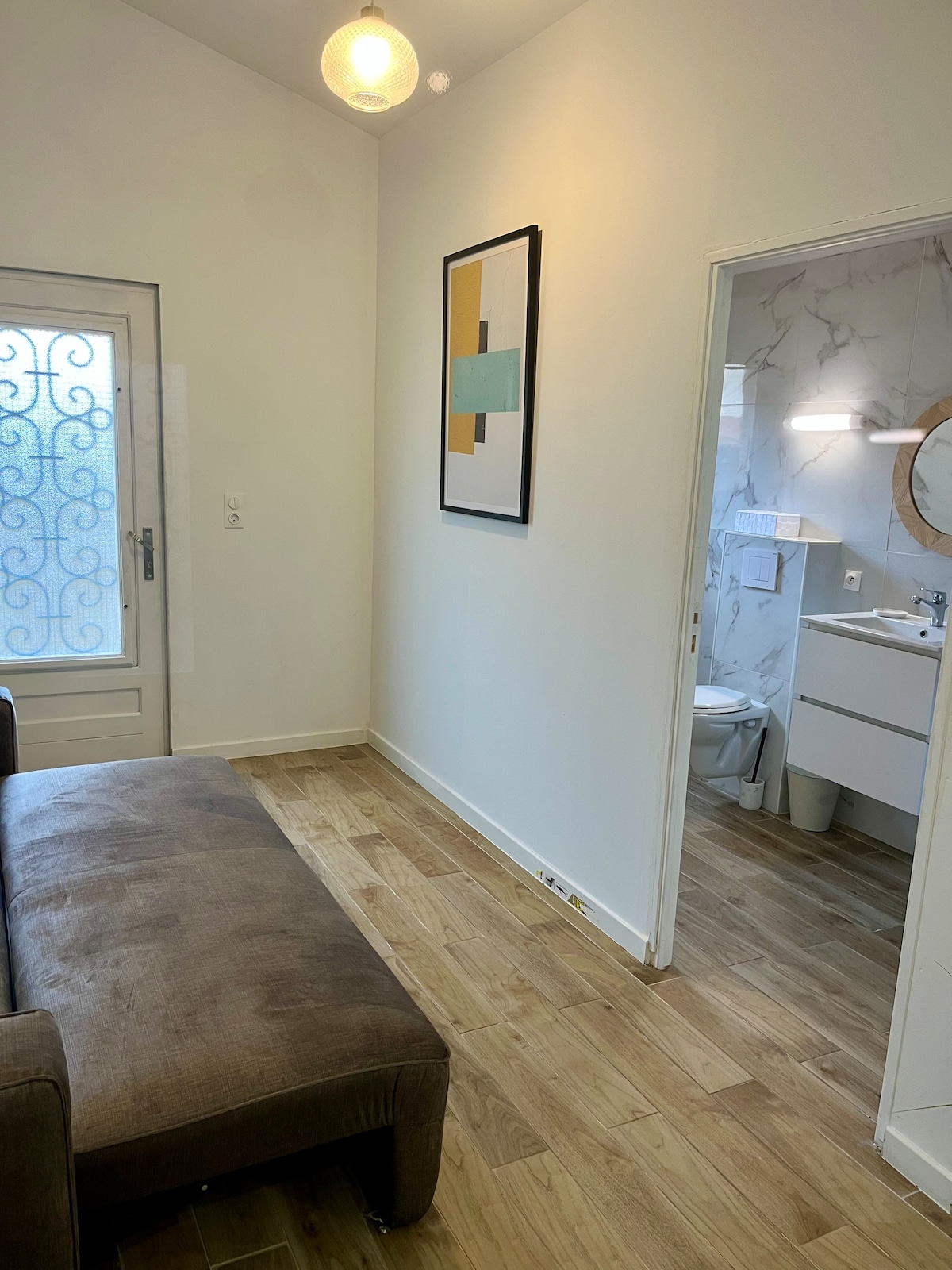 planinski dom, opremljen z eno spalnico, eno kopalnico s prho, straniščem in umivalnikom. 5 minut hoje od letališča Bastia. Idealno za zelo zgodnji odhod ali pozen prihod. mikrovalovna pečica in majhen hladilnik.Za nočitve rjuhe so enkratno,daljše bivanje tkanine rjuhe.Imamo še eno nepremičnino pod imenom tihi apartma 1 do 3 postelje na istem naslovu. Možnost najema avtomobila po ceni 40 €/dan, odvisno od razpoložljivosti.