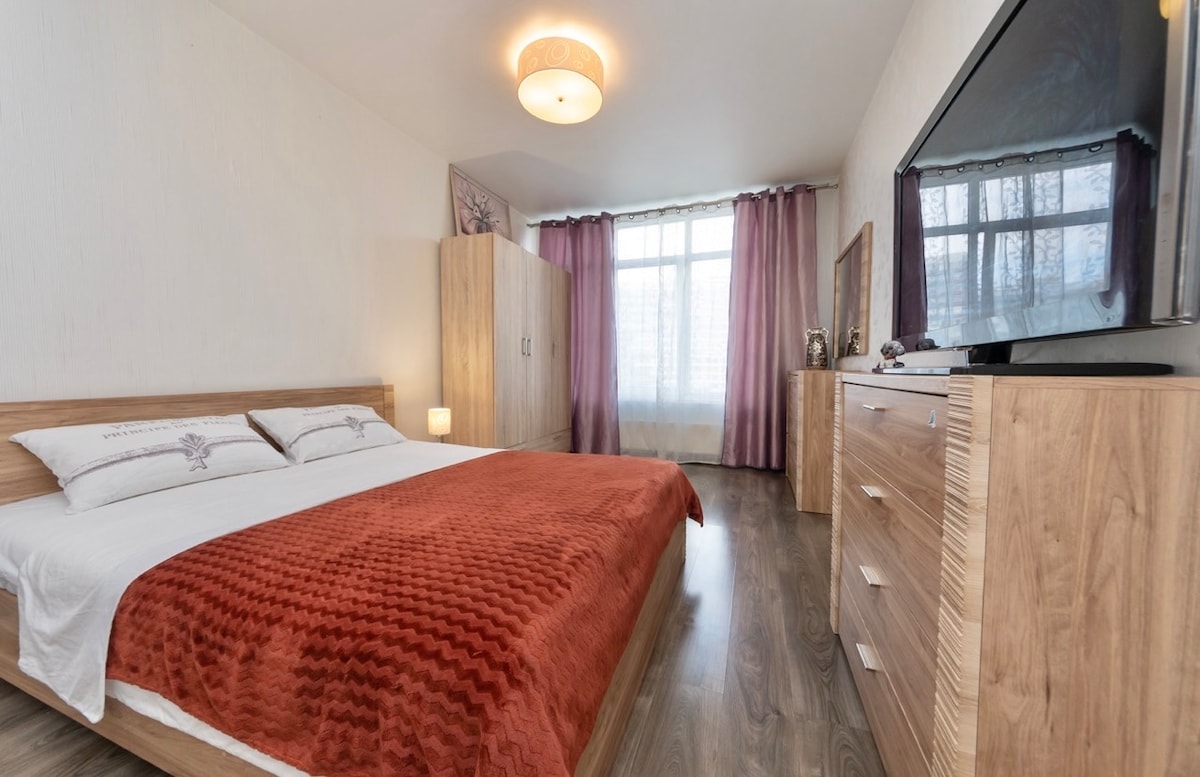 Svetlo in udobno stanovanje v stanovanjski skupnosti "Comfort Town". Apartma ima vse, kar potrebujete za udobno bivanje in prijeten počitek. Sveža posteljnina in ortopedska vzmetnica vam bosta podarili sladke sanje. V kuhinji, opremljeni z vsem potrebnim, lahko pripravite svojo najljubšo jed. Velik bojler zagotavlja toplo vodo. Hiter internet in televizija vam omogočata, da se zabavate.