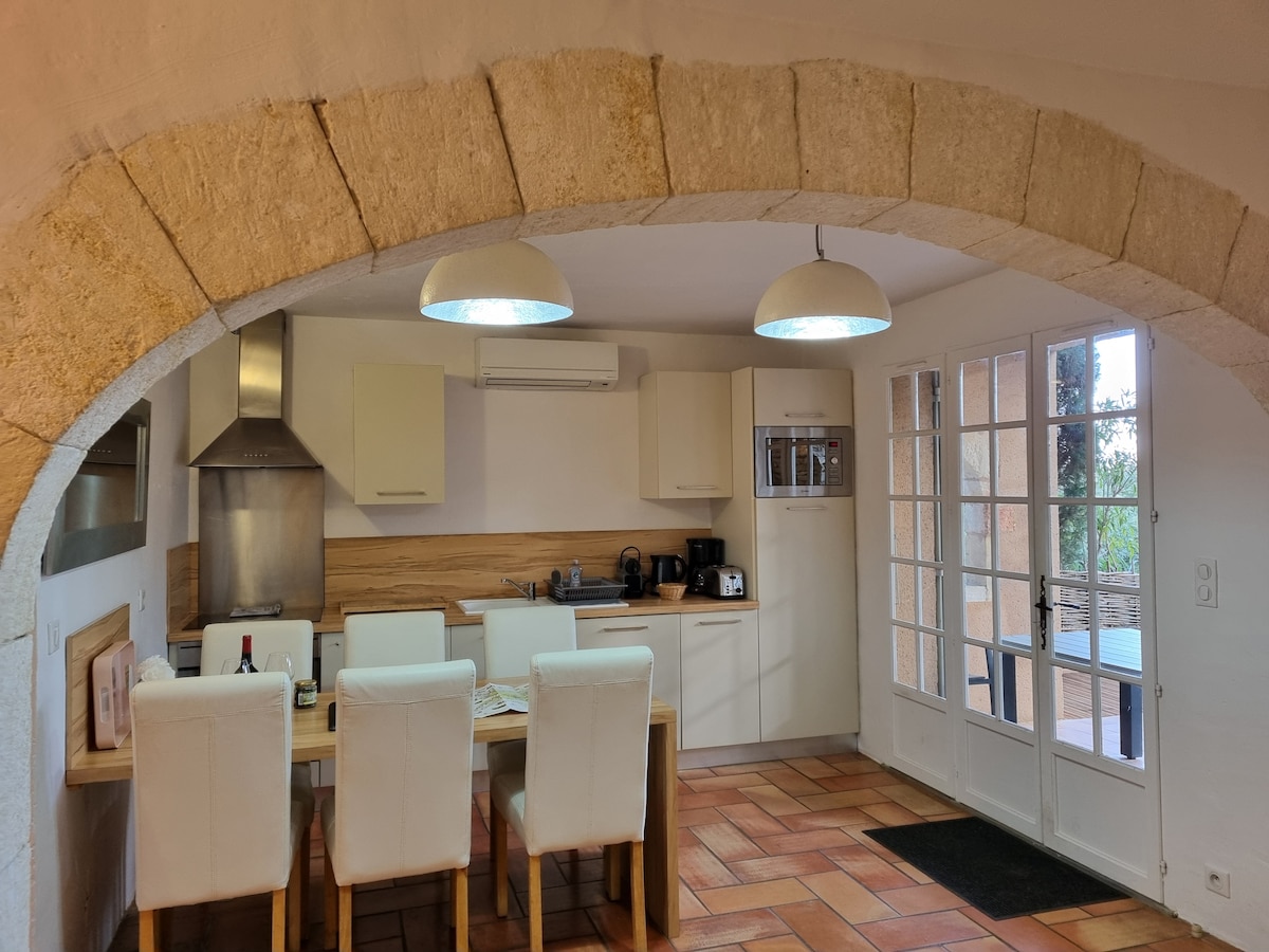 Bivajte v Mazet de l'Aqueduc, edinstvenem in očarljivem bivališču v rezidenci Les Garrigues s skupnim bazenom. Ta edinstvena hiša v slogu »mazet« navdušuje s svojim izjemnim dekorativnim elementom: steklenim akvaduktom, ki prečka dnevno sobo in ustvarja nenavadno in pristno vzdušje. Sončna terasa, pogled na gorovje Alpilles in provansalsko vzdušje za nepozabno bivanje z družino ali prijatelji.