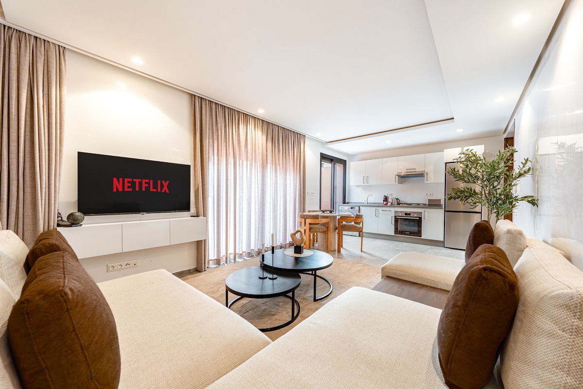 Bivajte v popolnem kraju za raziskovanje Marakeša. Svetlo, sodobno stanovanje je le nekaj minut stran od vrtov Majorelle in Stare Medine, v bližini pa so souki, trgovine in restavracije. Všeč vam bo: 🚗 Brezplačno zasebno parkiranje ❄️ Klimatska naprava in ogrevanje 🧺 Pralni stroj in stojala za sušenje ⚡ Hitri optični internet, Wi-Fi in TV 🍳 Popolnoma opremljena kuhinja 🧴 likalnik, sušilnik za lase... 🌞 Velik zaobljen balkon Blizu vsega, vendar mirno za sprostitev po celodnevnih pustolovščinah.