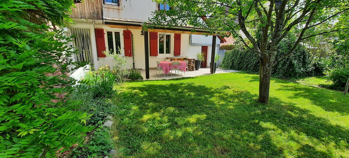 Počitniška nastanitev 5 ⭐️ Pridite in si napolnite baterije v tem mehurčku sprostitve. Premišljeno urejeno stanovanje s površino 85 m2, ki se nahaja v majhni rezidenci v pritličju, je opremljeno z masažno kadjo, ki lahko sprejme 3 osebe, savno in zasebno teraso. Uživajte v bivanju na mirni in udobni lokaciji. Zajtrk 25 € Romantična dekoracija/rojstni dan 25 € Pladenj Raclette 40 € za dve osebi Pladenj za obroke s sirom € 40