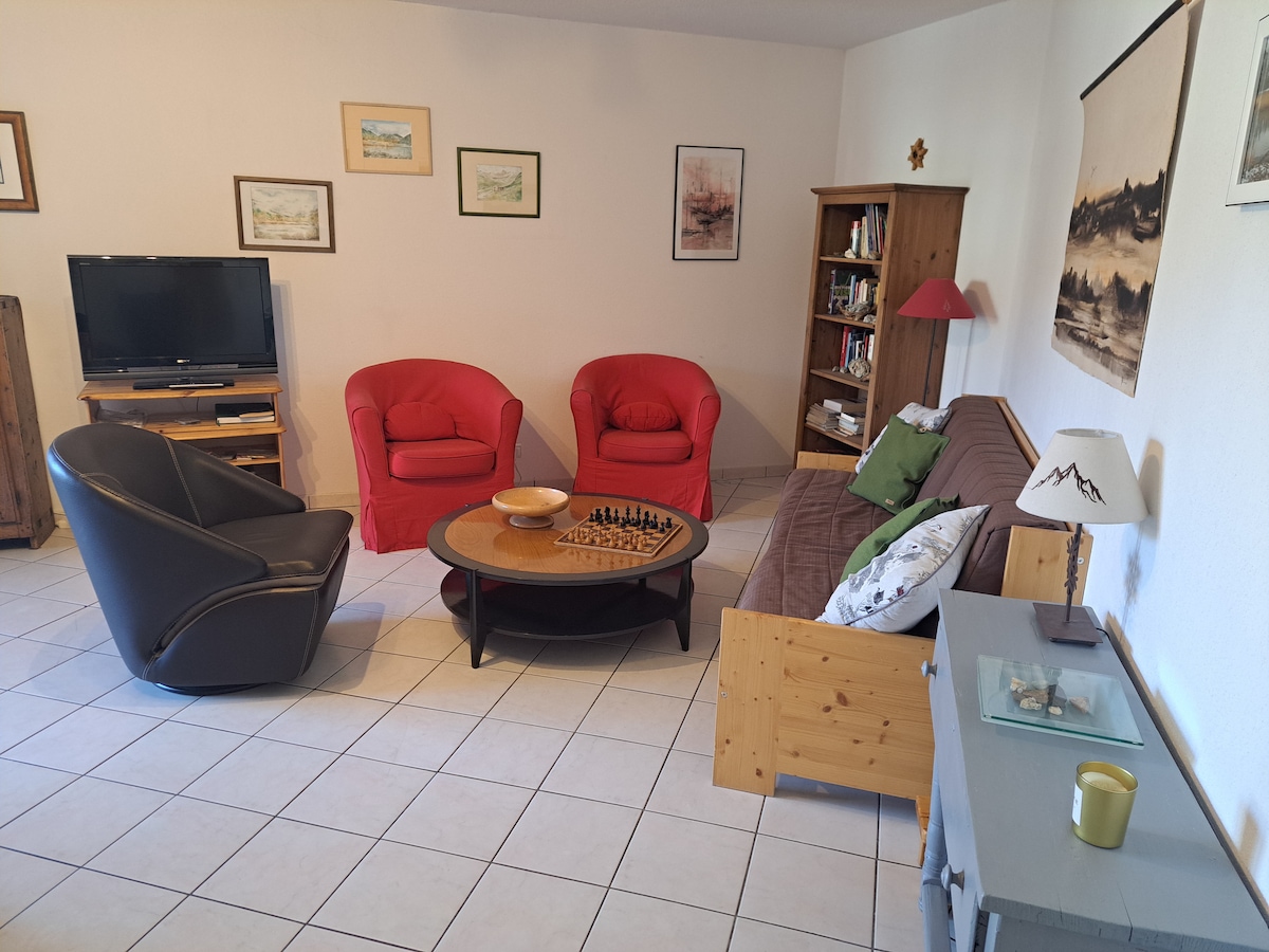 Uživajte v velikem stanovanju v središču Bourg-Saint-Maurice, 200 metrov od postaje in vzpenjače. Velika in svetla dnevna soba ter sončna terasa vam bosta omogočila, da se sprostite po celodnevnem smučanju v Les Arcs ali po coworkingu v Sowo :) 2 spalnici za 4 osebe - 1 raztegljiv kavč za 2 osebi - popolnoma opremljena kuhinja - dnevna soba - kopalnica - posteljnina - pametna TV + Netflix - internet - Bluetooth zvočnik - blazina za jogo - tedensko čiščenje - 1 terasa + 1 balkon
