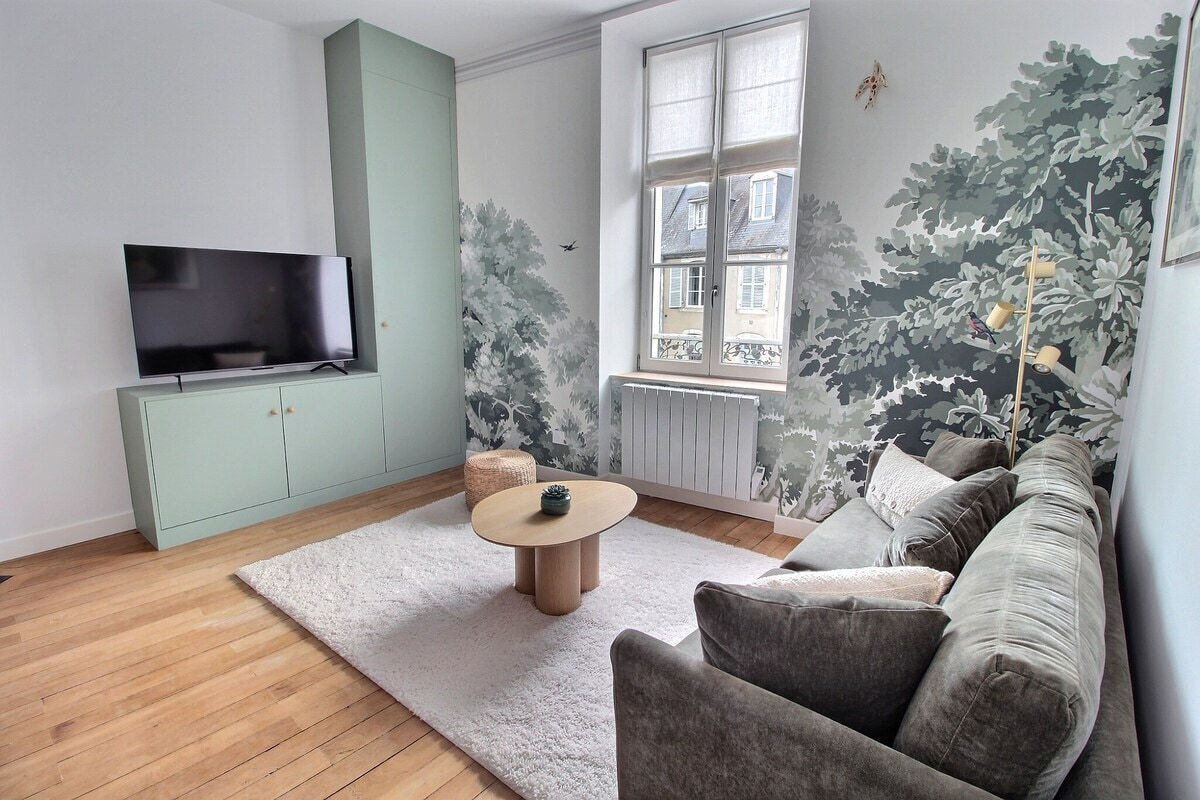 Sodobna notranjost v stari stavbi. Čudovit okvir, nedavna prenova. Čudovit življenjski prostor, miren, medtem ko ste v središču mesta. Enostavno parkiranje, pritrjeno parkiranje ali veliko brezplačno parkiranje, oddaljeno 100 m, zelo redko z novim prometnim načrtom!. V bližini trgovin (majhen supermarket,pekarna, lekarna) ob vznožju katedrale . Blizu centra za usposabljanje La Défense (CFD) in Maison de la Culture. Blizu Sancerreja (najljubša vas v francoščini)