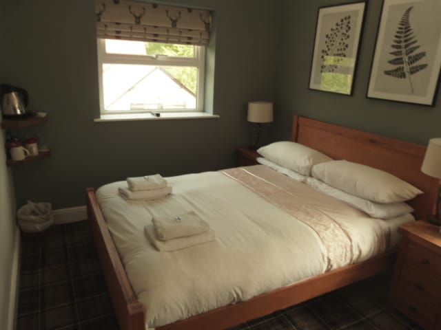 Soba za jelene se nahaja v strešnem prostoru nad našim nadstreškom za vozila na vrtu naše hiške na deželi v Burleyju v nacionalnem parku New Forest. Dvoposteljna soba z lastno prho je zasebna in mirna. V sobi bosta na voljo oprema za pripravo čaja in kave (skupaj s paketom piškotov) ter voda in mleko v hladilniku. Vas Burley je oddaljena le 10 minut hoje in ima veliko čajnic in majhnih kavarn, kjer strežejo kavo in rogljičke ali celoten angleški zajtrk, če želite.