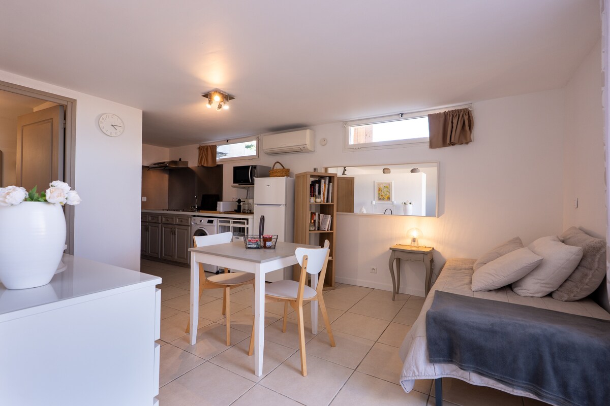 V osrčju vasi Bouzigues in vseh njenih trgovin in restavracij (pekarna, trgovina z živili, stiskalnica za tobak, frizer), vendar le 200 metrov od plaže ponujamo stavbo, kot je majhna hiša v osrčju našega zelo gozdnatega vrta. Imeli boste tudi dostop do našega bazena (uporabljajte ga samo z nami) Vhod opravi vinar, vrt pa na prvi pogled ne sumi. Tukaj je studio.