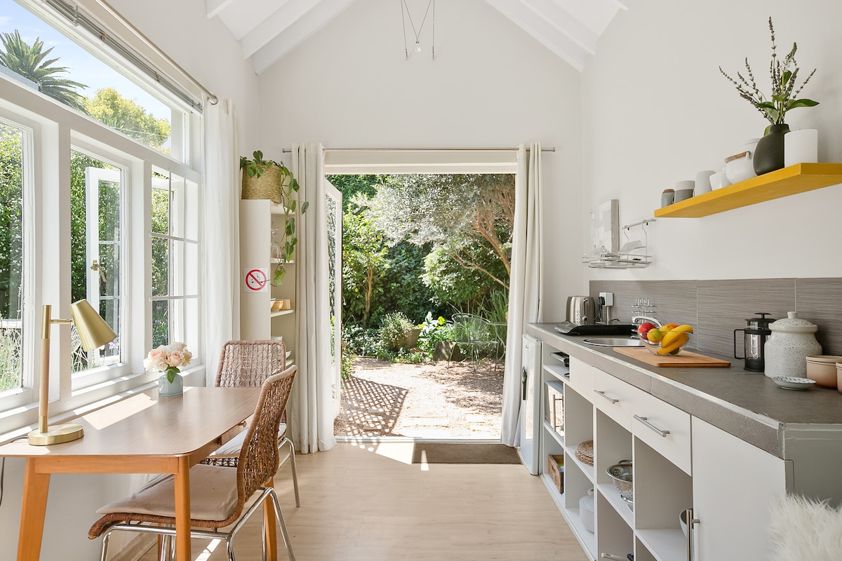 Ta varna in prostorna garsonjera je idealna za delovni prostor in /ali prostor za ponovno polnjenje. V enoti lahko udobno spita dve osebi. Vrata se odpirajo na sončno samotno teraso, ki vodi na zasebni urejeni vrt. Ta velika sodobna garsonjera zagotavlja dober Wi-Fi, rezervno sončno energijo, veliko delovno postajo, Netflix in varno parkirišče za en avtomobil. Smo ulico stran od 7. ulice. 7. ulica je živahna visoka ulica Melvilla, ki ponuja zanimivo paleto restavracij.