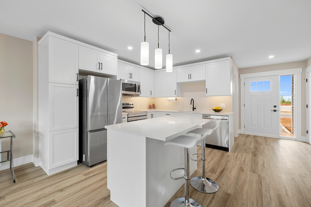 Na novo zgrajena celotna suita z zasebnim dovozom in vhodom. Ta svetel apartma z odprtim konceptom je popoln prostor za vsakogar, ki obišče naš čudovit otok. Ena spalnica, ena kopalnica, popolnoma opremljena kuhinja, pralni/sušilni stroj in dve dnevni sobi. Nahaja se v mirni ulici, petnajst minut do plaže Brackley, pet minut do nakupovalnega središča Charlottetown Mall in pet minut do letališča Charlottetown.