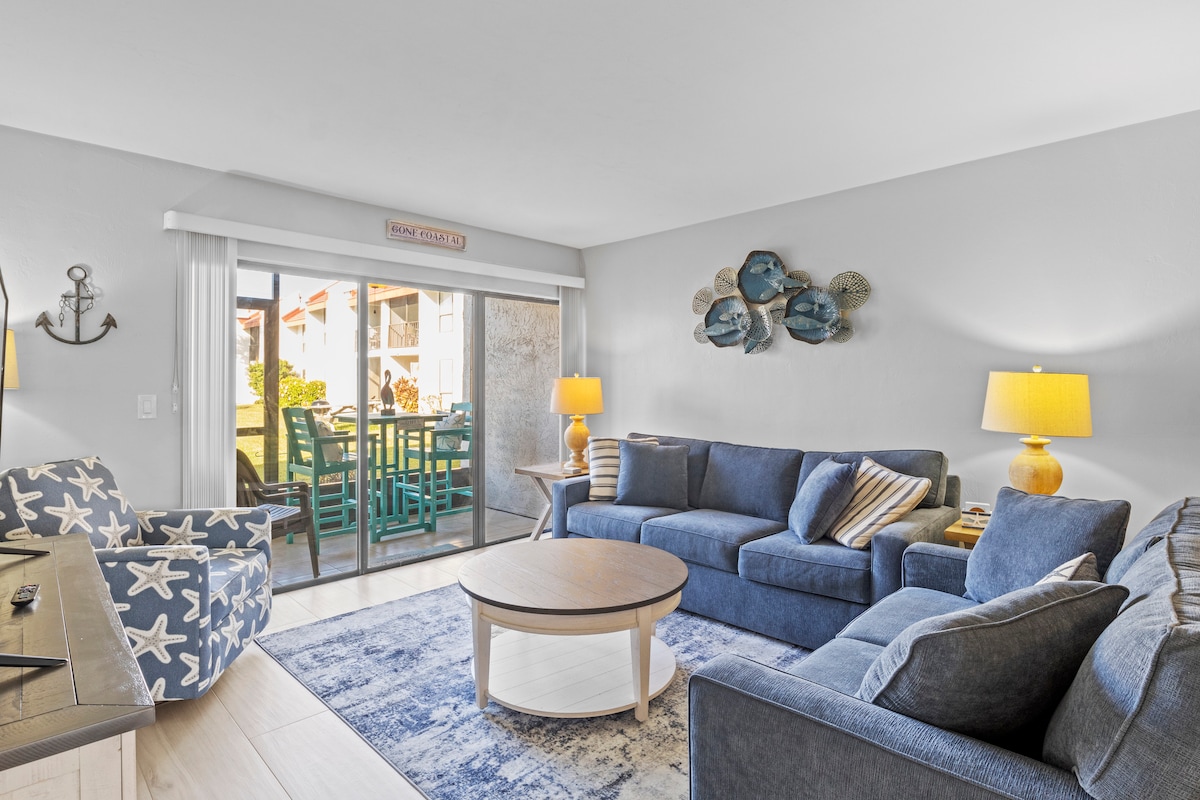 ONE SHELL COVE na otoku Anna Maria je bil popolnoma prenovljen po orkanih Helene in Miltonu. Čudovit tloris garsonjere z neverjetno kuhinjo. Čudovit razgled na valove in plažo tik pred vašim oknom. Vzemite brisačo, naredite nekaj korakov in že ste na plaži. Pesek pride naravnost do vaših vrat v tej pritlični enoti. Odlična lokacija Sprehodite se do nekaterih restavracij Brezplačen voziček se vzpenja in spušča po otoku Najemite kajake in deske za veslanje ter uživajte na plaži