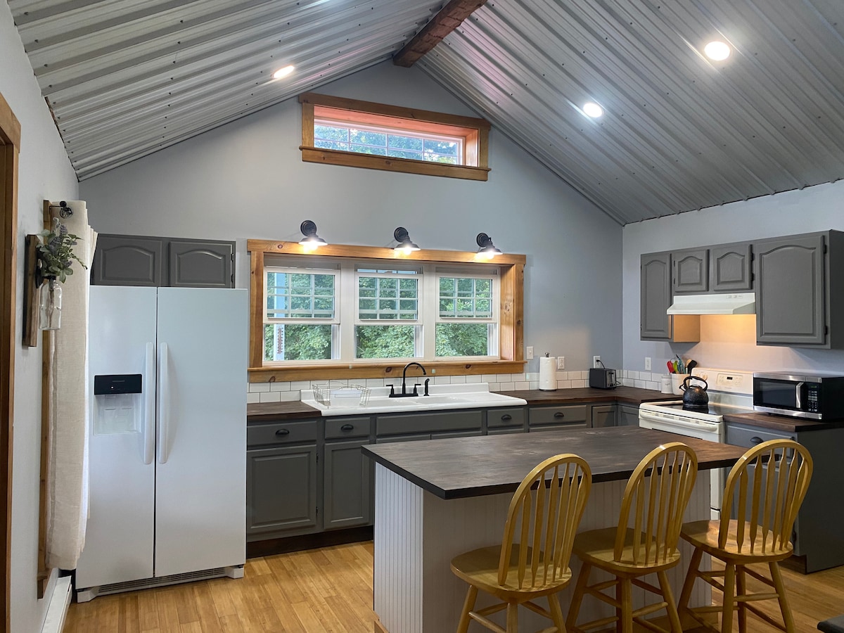 Ta čudovit skedenj na poti 14 je bil v celoti prenovljen v edinstveno luksuzno doživetje. Vi in vaši gostje se lahko vrnete k osnovam in uživate v tem 3-sobnem, 2 kopalnici, bivalnem in kuhinjskem prostoru na podeželju v Pensilvaniji. To je odlična priložnost za ogled prostoživečih živali, uživanje v vodi, ribah in sprostitev v razkošju. Koruzna otroška posteljica, piščančja klubska mizica in kuhinjska napa so le nekatere izmed čudovitih preoblikovanj v tem edinstvenem prostoru.