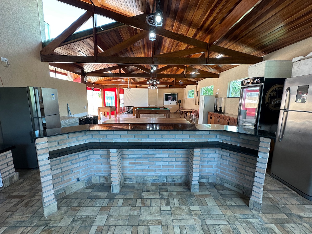 Idealno za sprostitev z družino in prijatelji 🏡 Kapaciteta za največ 15 gostov 🛁 3 kopalnice in 1 kopalnica 🚗 6 parkirnih mest 🏊‍♀️ Velik bazen (globok 5 x 13 m in globine 1,60 m) 🧖‍♀️Suha savna 📶 Wi-Fi in Netflix Opremljena kuhinja z 2 filtrom za vodo. 🥩Žar Posteljnina (vrhunska kakovost) Prezračevalniki v spalnicah in dnevni sobi. Športno ribolovno 🐟jezero Vrt s sadnim drevjem (pitanga, acerola itd.) Idealno okolje za počitek in povezavo z naravo.
