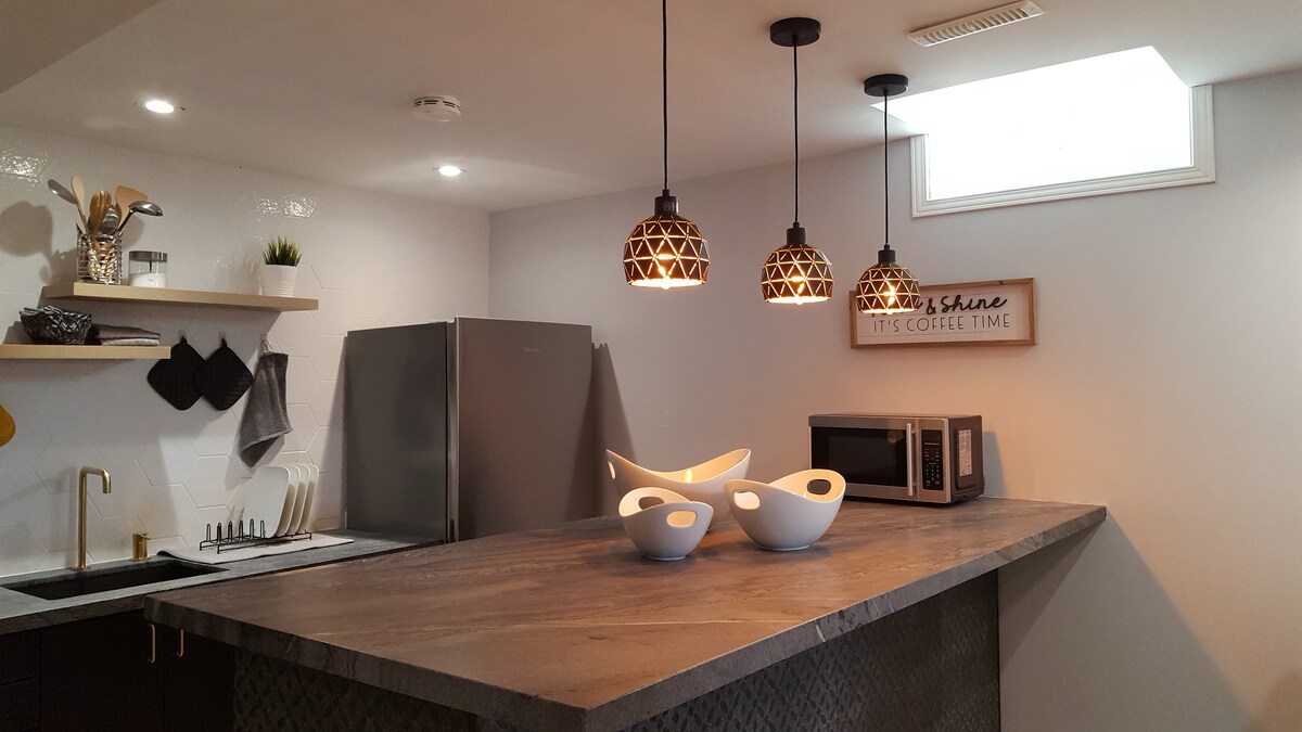 LUKSUZNI KLETNI APARTMA Z 2 SPALNICAMA! Na novo zgrajeno, popolnoma opremljeno čudovito stanovanje z razkošnimi sodobnimi zaključki, ki se nahaja v mirni in dostojni soseski v Bramptonu. Primerno za družine in popotnike. Blizu vseh glavnih avtocest in javnega prevoza. Blizu trgovin z živili, parkov, poti, telovadnice, bencinske črpalke, kavarne, kot sta Tim Hortons in letališče Pearson. Vsa oprema je vključena, da bo vaše bivanje čim bolj udobno.