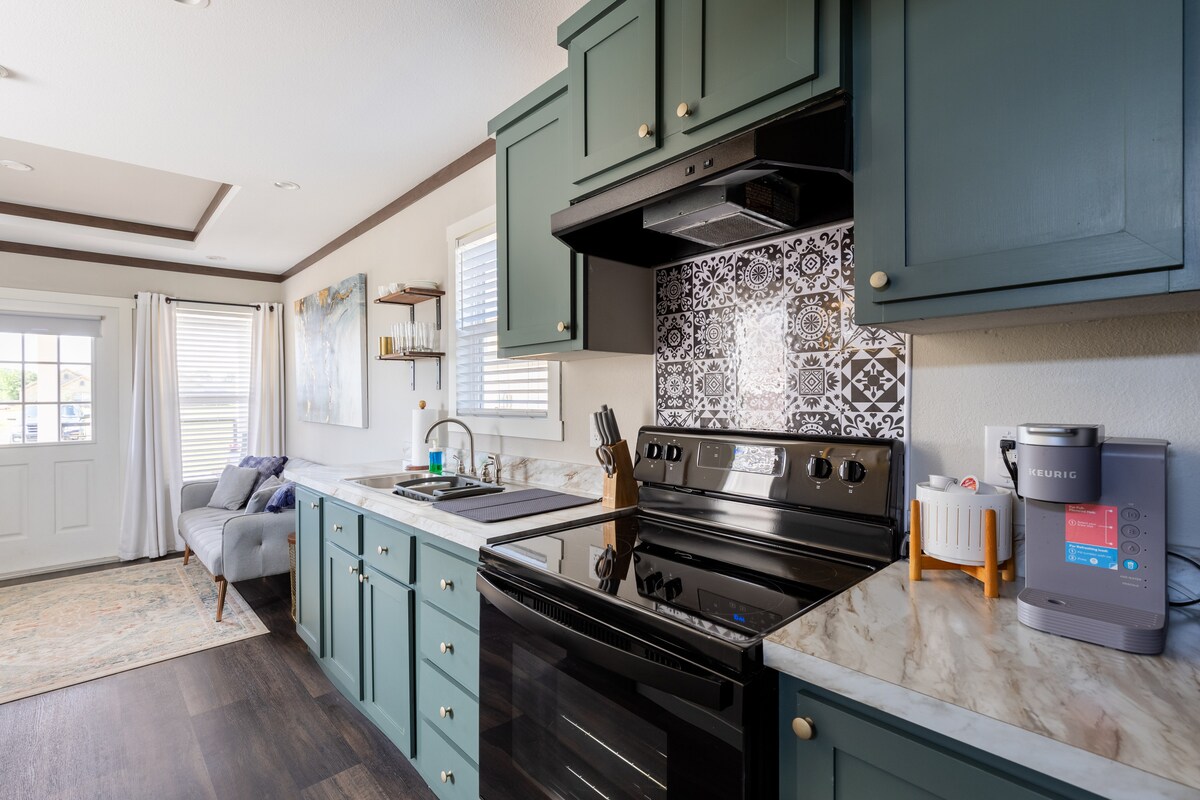 Experience luxury tiny home living when you stay at La Casita, nestled in the county just a few miles from downtown Waxahachie and only 25 minutes from downtown Dallas. With all the amenities of home, this is the perfect getaway from the hustle and bustle of everyday life. Spacious enough for a couple as well as a kid sized futon in the living room. Sit back and relax on the private covered porch, while enjoying your morning coffee. La Casita is the perfect home away from home.