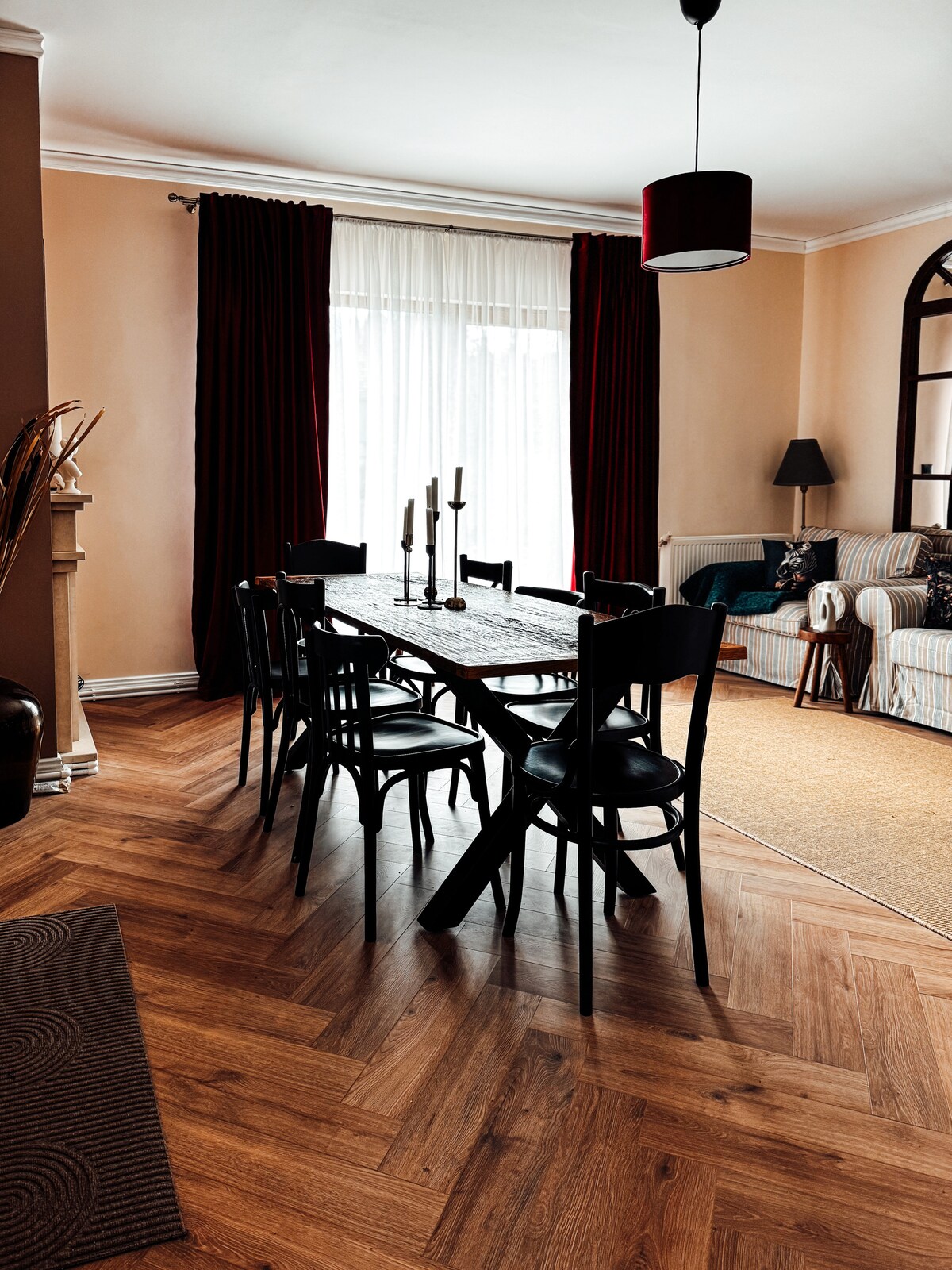 Un apartament generos, cu un design deosebit, localizat într-o zonă liniștită la parterul unei case cu o arhitectură premiată internațional, care garantează o ședere plăcută în minunatul oraș Brașov. Oaspeții beneficiază de acces separat, self check-in și o curte englezească cu acces exclusiv. Ideal pentru familii și grupuri de prieteni.