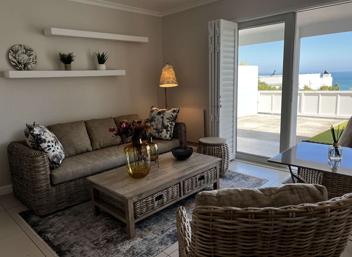 If you're looking to unwind with family or friends, our sea side apartment offers the perfect spot to do so. Book now! and let us share our little piece of paradise with you. Features: 2.4 KVA battery backup to run TV, lights etc Fast 5G WiFI Smart TV, Netflix, Disney, Showmax etc Large open living spaces Full Kitchen - 5 Burner Gas Hob Swimming Pool Please reach out if you have any special requirements! 25min CT Int Airport 20min Stellenbosch 40min Cape Town CBD 60min Hermanus