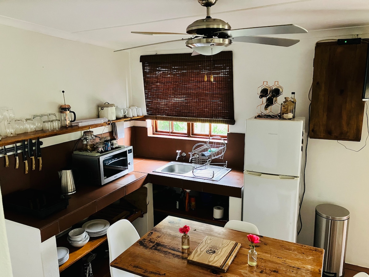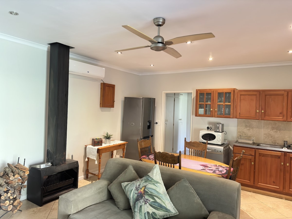 Naše bivališče je lepo obnovljena prvotna hiška na deželi McGregor s čudovitim velikim vrtom na osrednji lokaciji. Namestitev je primerna za družine in hišne ljubljenčke (upoštevajte, da imamo dva pokrita namizna jezu). Uživajte v sproščanju na vrtu, polnem ptic, ali pa raziščite glavno ulico v bližini. Na voljo je zunanji braai, velik stopnišče in gazebo za sončne dni ter notranji antracitni kamin v zaprtih prostorih za hladne dni.