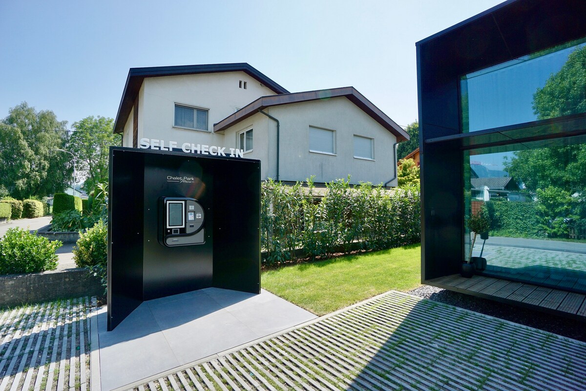 Das Chalet ist mit einem luxuriösen Boxspringbett mit hochwertigster Bettwäsche ausgestattet und verfügt über ein separiertes Schlafzimmer mit einem Doppel-Hochbett. Im Wohnzimmer gibt es ebenfalls ein Hochbett mit einem Einzelbett. Weiters verfügt das Chalet über eine Küche mit Herd, Backrohr, Kühlschrank, Geschirrspüler, Nespressomaschine, Garten, zwei 50“-Flachbildfernseher mit Smart-TV-Funktionalität, kostenfreies WLAN. Mit dem 24/7 Check-In-Automat check-in Sie bei uns ein