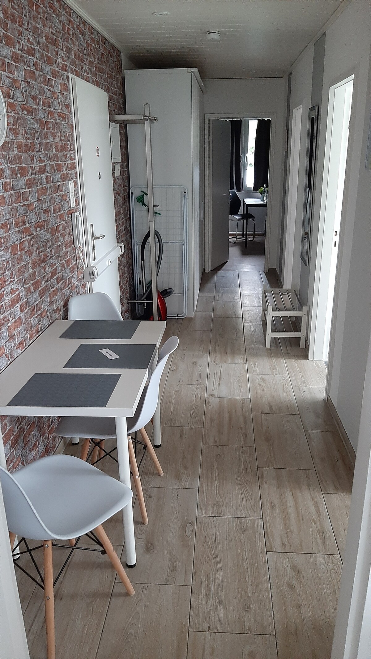 Wir bieten eine sanierte Unterkunft ( 64 qm Wohnung ) für 3 bis 5 Personen mit 3 EZ oder 2 DZ und 1 EZ für Monteure, Berufspendler oder Feriengäste an. Sie befindet sich in der 1. Etage! Küche mit GS. Badezimmer mit Dusche und Waschmaschine. Flachbildschirmfernseher in jedem Zimmer, High-Speed W-LAN und Sat TV. Öffentliche Parkplätze rund ums Haus auch für kleine Transporter kostenlos. Einkaufsmöglichkeiten, Bank, Apotheke und Bushaltestelle sind fußläufig in 200 m zu erreichen. Wir freuen uns!