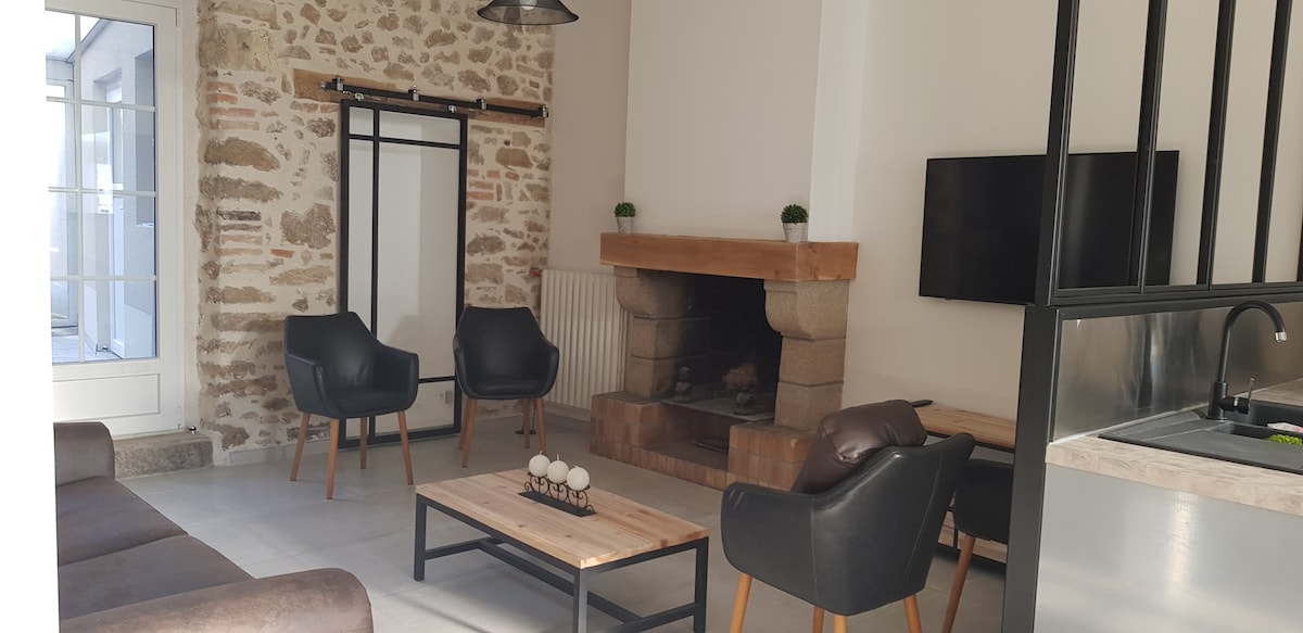 12 minutes du Puy du Fou, maison rénovée en 2018 au fond d'une petite impasse finissant sur un vaste espace vert. Idéale pour 6 personnes ( classement 4 * par les offices de tourisme de France) elle possède néanmoins 8 couchages. 3 chambres, 2 salles d'eau avec WC à l'étage, pièce de vie sur cuisine ouverte, WC au rdc, jardin clos, terrasse et BBQ. Parking privé. Wifi Dépendance commune avec un autre gîte proposant des activités ludiques ( ping-pong , baby foot, jeux de plein air )