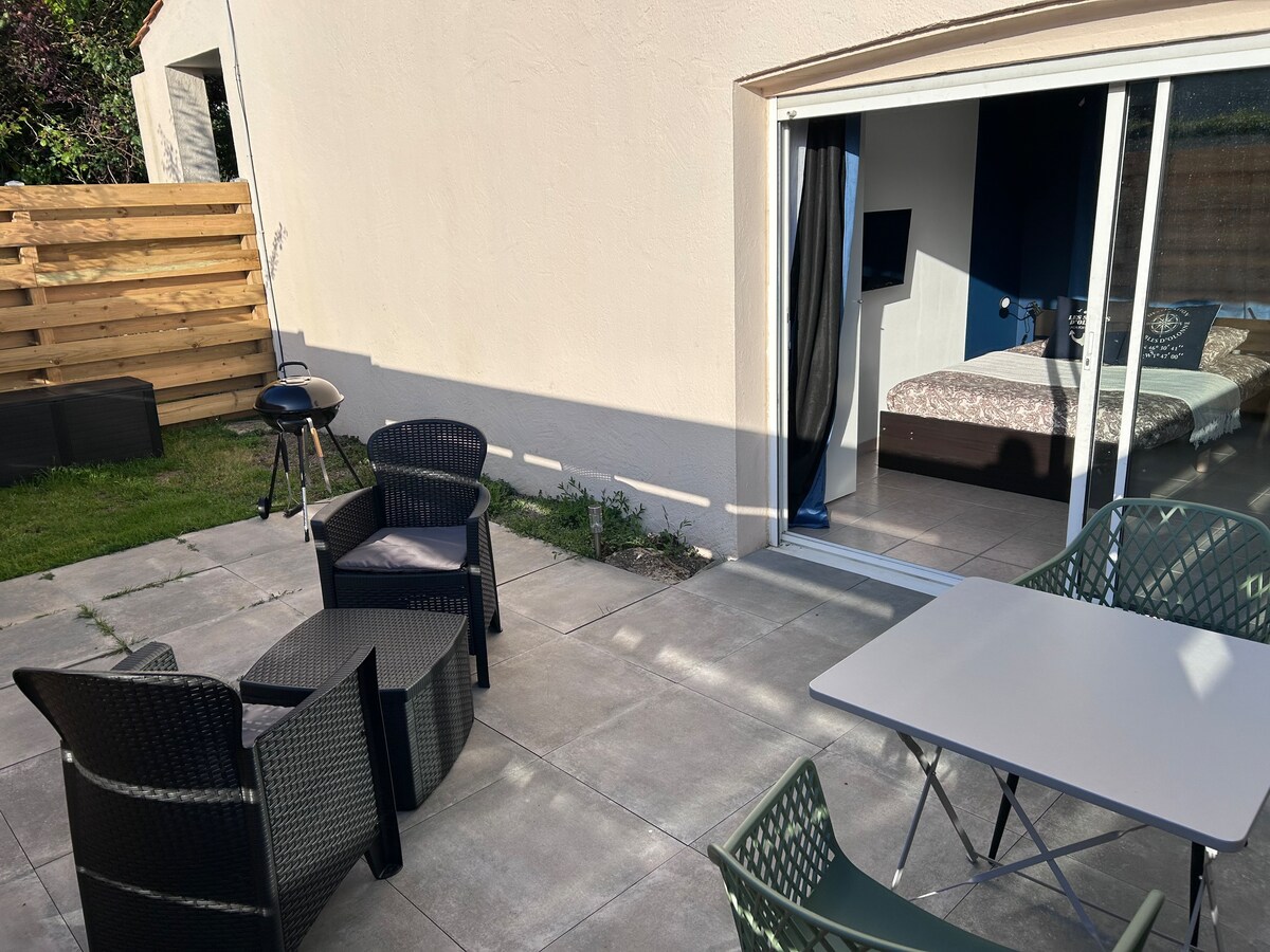 Poenostavite svoje življenje v tem mirnem, osrednjem prostoru. Ta mirna garsonjera, blizu vse opreme in morja, vam bo omogočila počitek, medtem ko ste v bližini Les Sables in blizu morja. Imeli boste parkirišče pred garsonjero, ograjeno parkirišče in znotraj mojega zemljišča! Zato ni tveganja za vaše vozilo. Od arene vas loči 3 minute vožnje z avtomobilom, lahko pa se odpravite s kolesom ali peš. Pridite in se spočijte, sončite in uživajte v tem mirnem oddihu v popolni preprostosti!