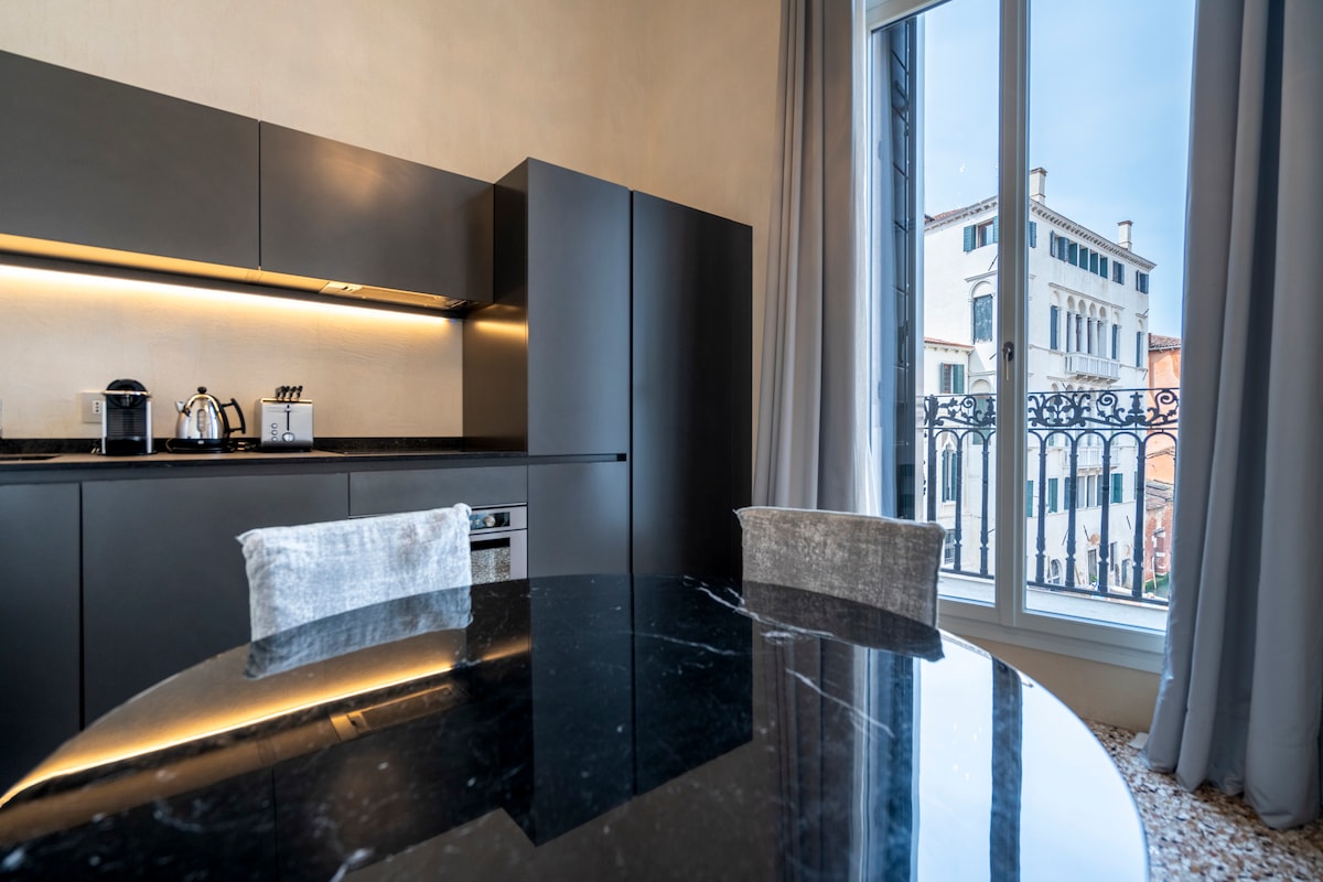 Naše fascinantno stanovanje z osupljivim pogledom na Veliki kanal in most Rialto se nahaja v Sestiere di San Marco, le nekaj korakov stran od Fortuny Palace - v samem srcu otoka Benetk! Pred kratkim prenovljeno stanovanje se nahaja v drugem nadstropju palače iz 18. stoletja, streže pa mu dvigalo, ki gre pred vhodom. Zgradba je obrnjena proti Velikemu kanalu in je dobro povezana z javnim prevozom.