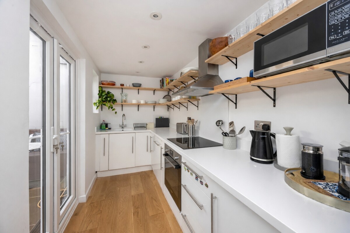 Design-led Georgian cottage with sunny patio in central Brighton. Recently renovated with a calm, modern feel, blending original character with thoughtful interiors. Sleeps up to 6 across two bedrooms and a sofa-bed. Set on a quiet street, yet 5 mins to the beach, 3 to top restaurants and 15 to the station. Hosted by a 5 Star Local host with curated stays focused on comfort, detail and a seamless experience.