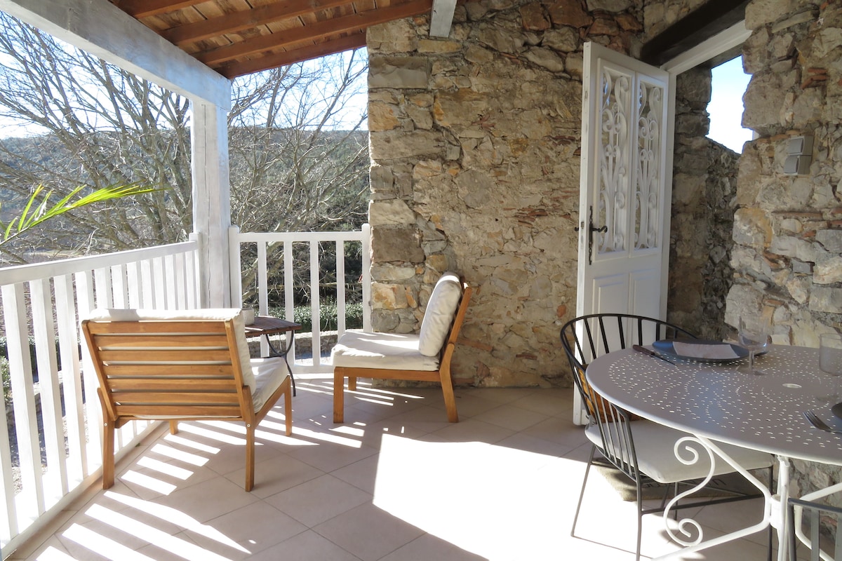 Čudovita hiška na deželi z medetažo za 2-4 osebe, svetla in udobna, v kamniti kmečki hiši iz 17. stoletja, obdani z naravo (Gorges de l 'Hérault). Prijetna pokrita zasebna terasa s pogledom na naš vinograd in dolino, ki je uporabna v vsakem letnem času. Popolnoma opremljena kuhinja, sedežna garnitura z raztegljivim kavčem, kopalnica s prho, zakonska postelja na medetaži, Wi-Fi, TV. Bazen , zasebni dostop do rek (Buèges in Hérault). Blizu mest Saint Guilhem le Désert, Pic Saint Loup, Sud Cévennes.