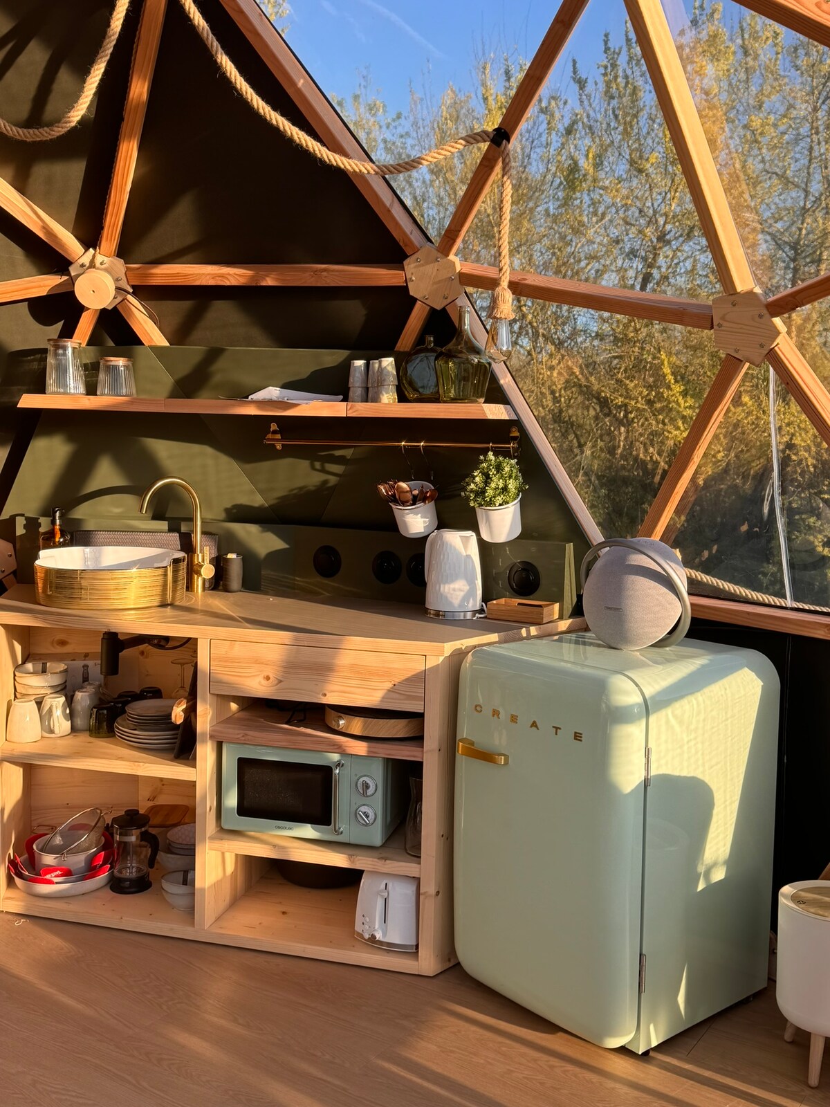 Laissez-vous bercer par les sons de la nature dans ce logement unique. Équipé d’un spa privatif disponible pendant tout votre séjour sans horaires. Le dôme est 100% transparent ce qui vous permettra de percevoir les étoiles à la tombée de la nuit. Il est équipé de rideaux complètement occultants pour garantir votre intimité. La bulle est équipée d’une climatisation. Toilette classiques et douche eau chaude. Les serviettes de bains sont fournies. Frigo, clim, etc.