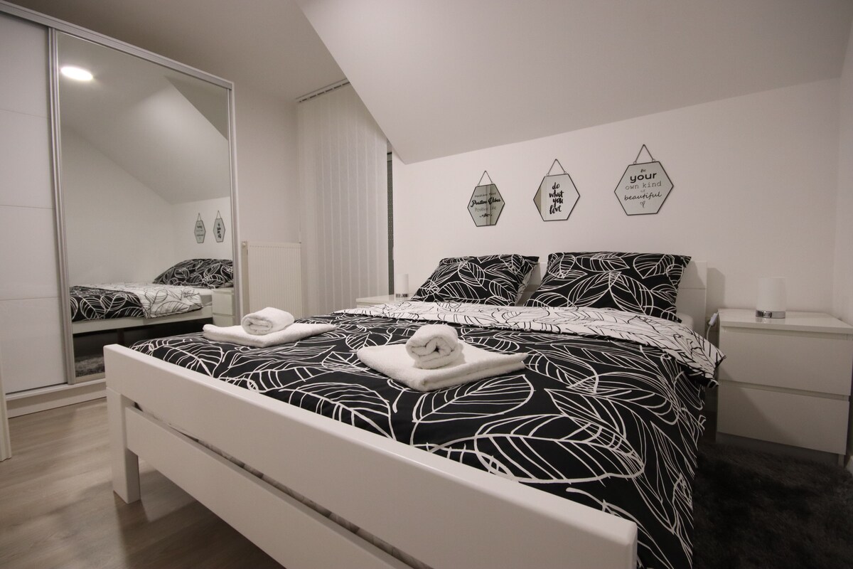 Prostorno in moderno urejeno stanovanje v velikosti 90 m2, s 3 sobami (2 spalnici), klimatizirano in ogrevano s centralnim ogrevanjem. Uživajte na 2 balkonih, Netflixu, ogrevanem bazenu in prostoru za sončenje na zasebnem ograjenem dvorišču. Na voljo sta leseni žar in zidani žar. Zasebno parkirišče. Gostje imajo dostop do celotnega dvorišča in zagotavljamo popolno zasebnost. Idealno za sprostitev v mirnem okolju.