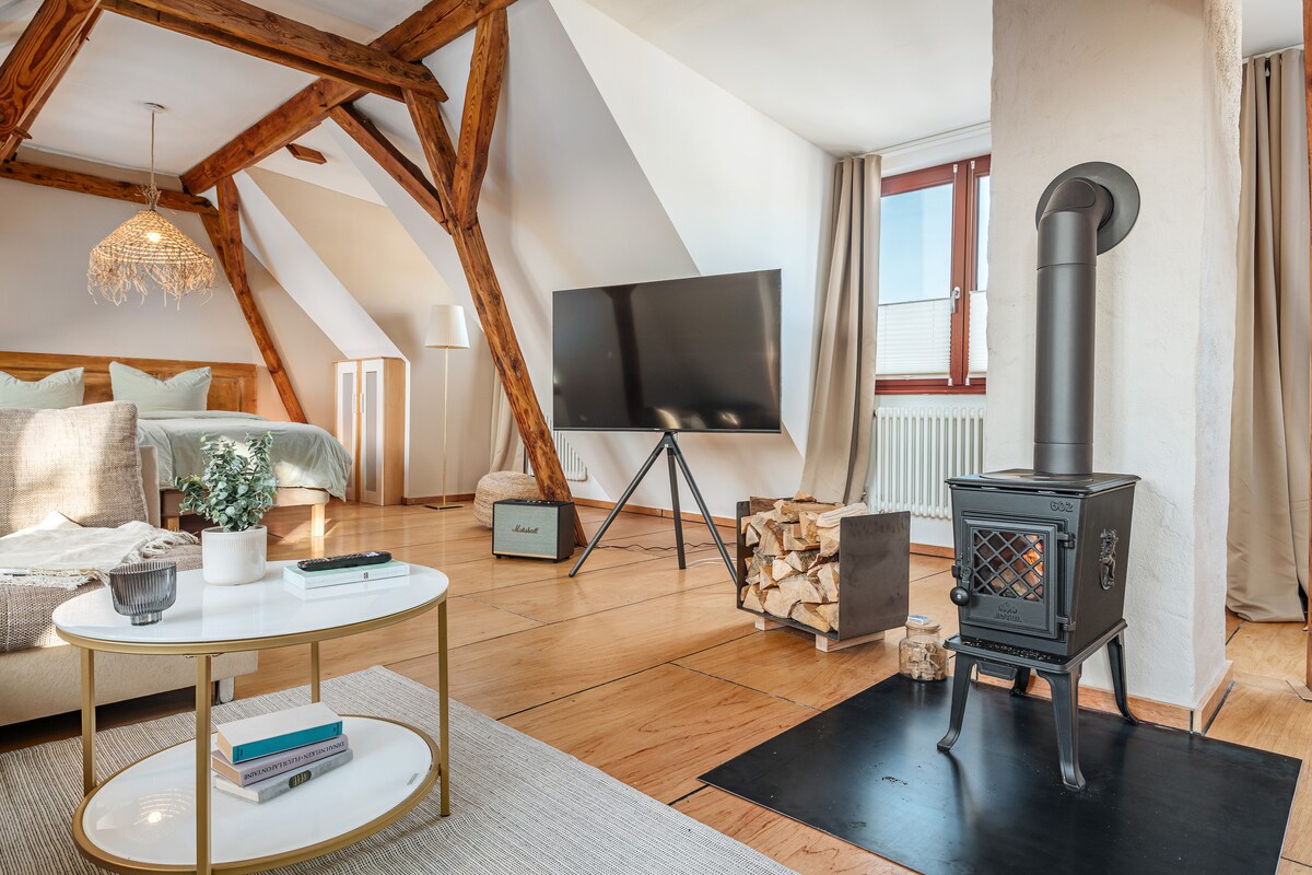 Odprto, lahkotno stanovanje v podstrešju je popoln oddih za vaše bivanje v Rostocku. Lokacija na robu stanovanjskega območja Rostock-Kassebohm je tudi odlično izhodišče za raziskovanje mesta ali okolice s kolesom ali javnim prevozom. Nakupovalna in avtobusna postaja je oddaljena približno 5 minut hoje. Stanovanje je kot nalašč za tiste, ki želijo preživeti le nekaj dni ali celo nekaj tednov v mestu.