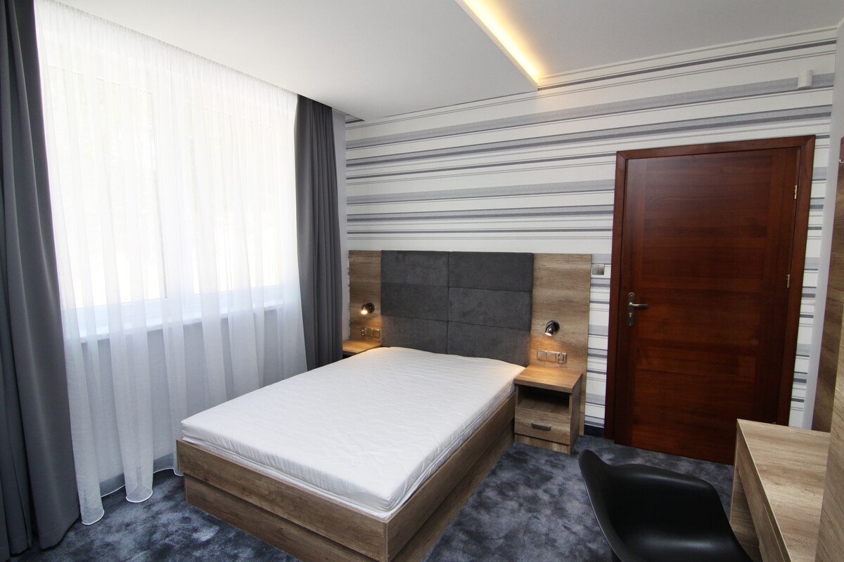 Elegantno urejeno stanovanje za dve ali tri osebe z visokim standardom. V stanovanju je soba z udobno zakonsko posteljo, kavčem, pisalno mizo, televizorjem, popolnoma opremljeno kuhinjo in sodobno kopalnico s prho. Stanovanje se nahaja v pritličju in ima ločen vhod. Možno je najeti dodatno spalnico s kopalnico z doplačilom. Blizu jezera Low Brodno, številnih gozdov, središča mesta in bližnjih trgovin.
