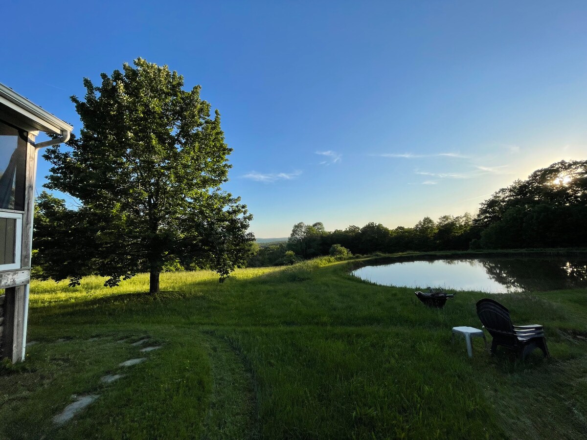Idyllic pastoral setting w/ valley & distant lake views. Cozy carriage house w/ wraparound deck & fire pit—perfect to relax & unwind. Quiet & close to waterfalls, trails, biking, wineries & cideries. Warm, updated, sleeps 6, wood-burning fireplace, 3BR/2BA. W/D, DW, A/C. EV charging. Solar powered. 5 min to Ithaca College. 8 min to Buttermilk Falls. 10 min to Cornell. 15 min to Cayuga Lake & Ithaca Farmers Market. 20 min to Ithaca Airport.