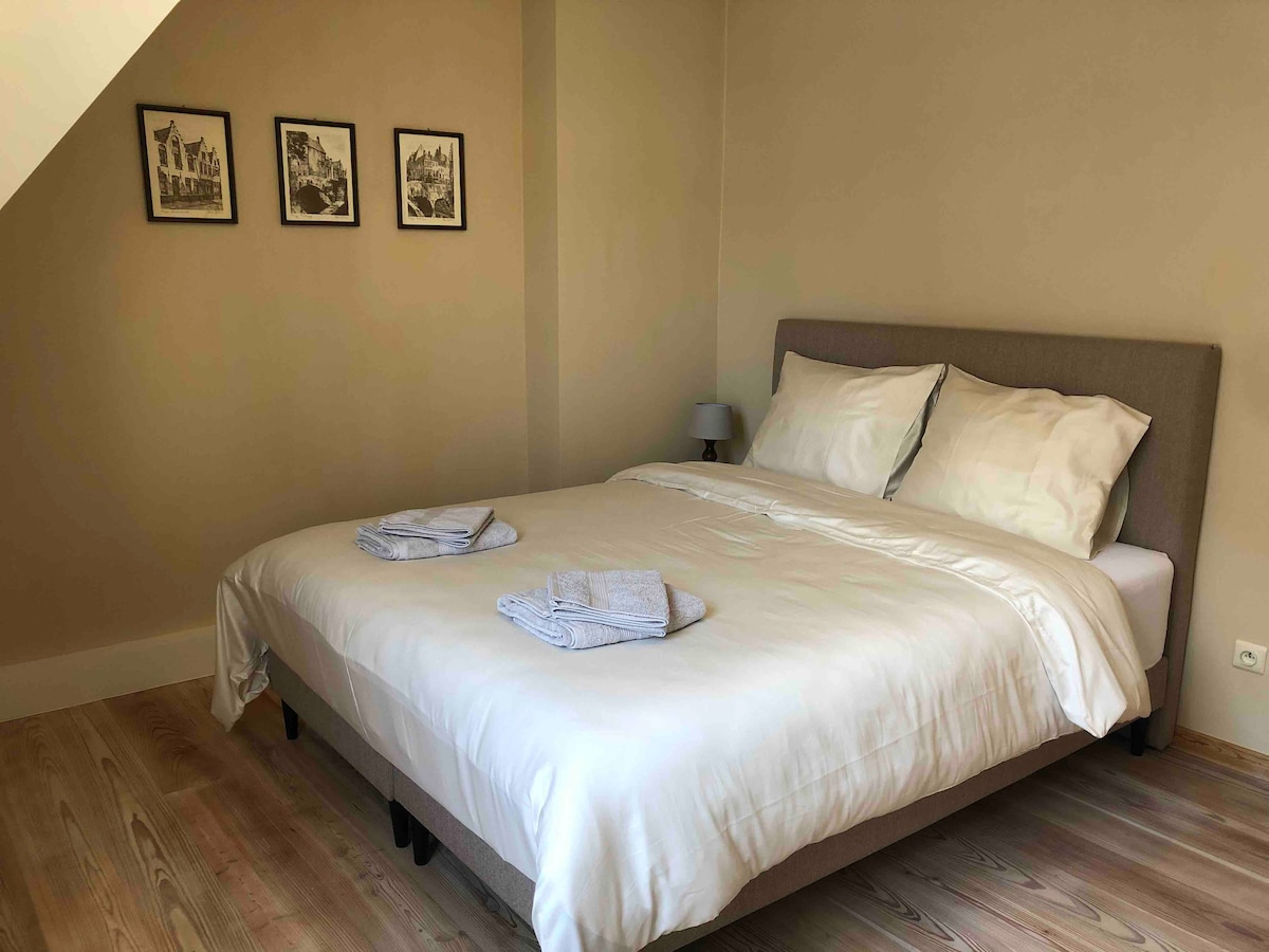 Naša hiša Bruges, ki se nahaja v središču mesta, je oddaljena le 2 min hoje od trga Market Square in drugih znamenitosti. Skriva se v mirni ulici in zagotavlja miren spanec. V pritličju je zasebna spalnica s prostorno kopalnico, osebno kuhinjo z aparatom Nespresso, hladilnik in še več ter majhno dvorišče. Edini skupni prostor je vhodna dvorana, saj živim zgoraj. Uživajte v udobju in miru v osrčju Brugga.