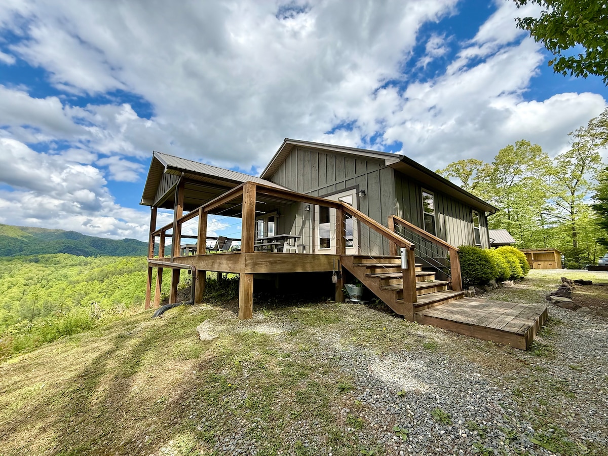 To prenočišče po meri, zgrajeno leta 2020, je popolno mesto za sprostitev. Nahaja se ob zasebni cesti (štirikolesni pogon ni potreben), leži na 4,25 hektarja, s čudovitim razgledom na Great Smoky Mountains. Ko pridete tja, se boste resnično počutili oddaljene od sveta. Sodobna, skandinavsko-japanska zasnova je edinstvena za to območje. Vključuje: glavno spalnico, spalno podstrešje (futon z zakonsko posteljo in po meri po meri Twin XL pograd); odprta kuhinja/dnevni prostor, pokrite in odprte terase. 10 minut od Bryson Cityja in Cherokeeja.