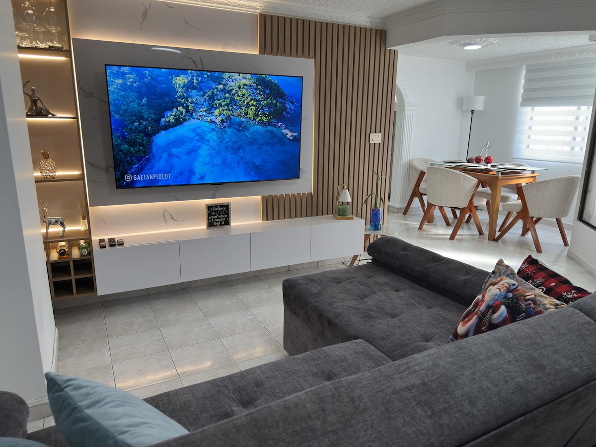 Stanovanje s 3 spalnicami in 2 kopalnicama, garsonjera, dnevno jedilnico. Wi-Fi 250 Mb/s. Pred nakupovalnim centrom Cacique (kino, restavracije in kavarne itd.), Head in Canaveral 10 min. Pridite in fotografirajte s pogledom na celotno mesto. Samo mimo ulice in ste v CC el Cacique, Neomundo in atletskem stadionu. Za družinska, študijska ali poslovna potovanja (opremljena z brisačami, likalnikom, sušilnim strojem, rjuhami, kuhinjskimi pripomočki in vsemi napravami), zabave niso dovoljene.
