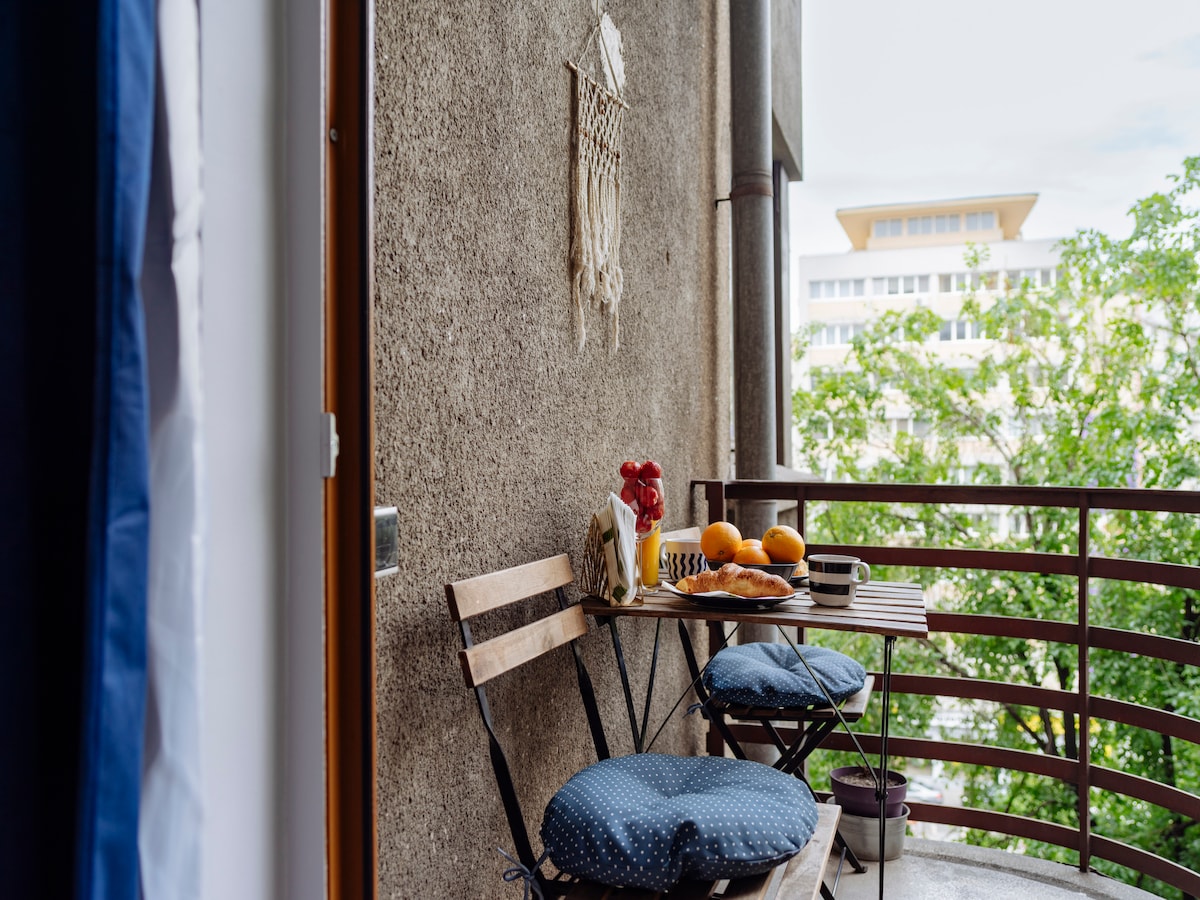 Ta čudovit apartma z 1 spalnico se nahaja v središču Bukarešte, na meji med živahnim mestom in starim mestom. Lokacija pametno, da ne more biti boljše od tega. Z očarljivega balkona imate čudovit pogled na reko in mesto. Kraj je lahko dostopen z javnim prevozom (avtobusom in podzemno železnico). To svetlo stanovanje je bilo v celoti prenovljeno leta 2023 z visokimi standardnimi materiali in ima vso možno opremo, ki je na voljo za popolno bivanje.