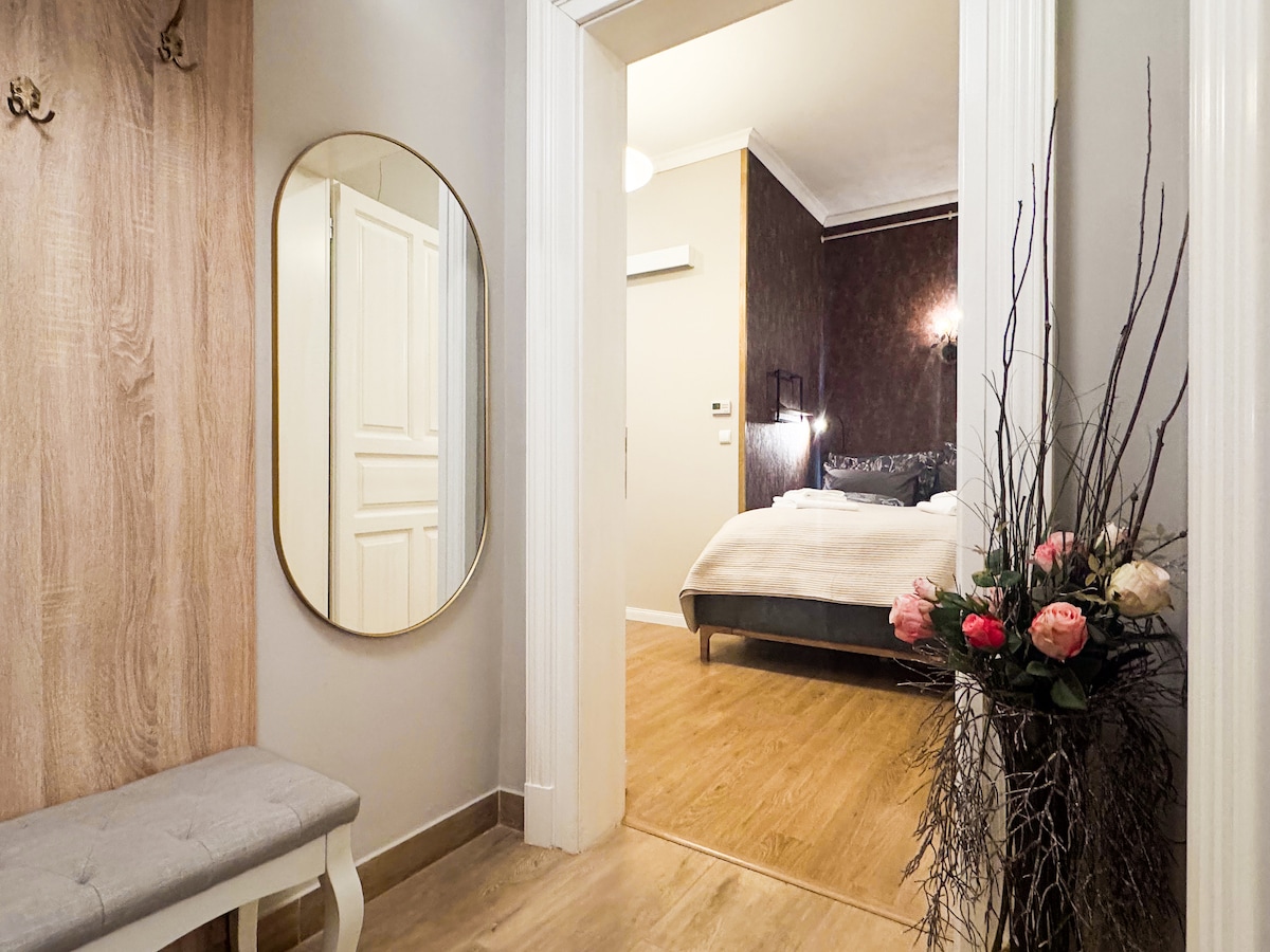 The accommodation includes one bed room with queen size bed, and a very spacy living room with open kitchen and dinning table. The bathroom is large and pampering. The flat is full with light, is airy and has a great atmosphere. You will have a high-speed WI-FI in the flat and also LAN connection. The entire flat is offered for use including Nespreso coffee-maker, oven, fridge and micro. We offer our guests to enjoy our organic hand made soaps. You will have a high-speed WI-FI in the flat and also LAN connection. The entire flat is offered for use including Nespreso coffee-maker, oven, fridge and micro. The flat is located in the fifth district, in the heart of downtown Budapest. The neighborhood is lively and restaurants, cafes, and ruin bars are all around. The street is very close to the famous Dohany synagogue and Vaci shopping street. Getting around couldn't be easier from this flat. You can either walk around to the famous city center highlights or use any of the excellent public transportation; bus, metro or tram. The flat is 50-200 meters distance from bus, tram and metro stations. The flat is located in the second floor of an historical building that was designed by the same famous architect of the opera house. The flat is modern but the building is not renovated and has NO LIFT, similar to many of Budapest's downtown buildings that bring together past and present, old and new.