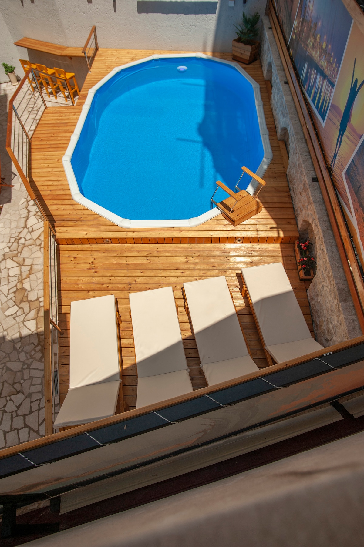 Štiriposteljna soba nudi bazen z razgledom. Štiriposteljna soba nudi klimatsko napravo, sedežno garnituro, teraso s pogledom na morje in zasebno kopalnico s prho. Enota nudi 4 postelje. Sprostite se z vso družino v tem mirnem prenočišču.