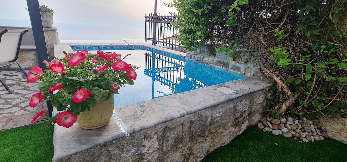 Pobegnite v našo razkošno 4-sobno vilo v Budvi, kjer vsaka soba ponuja osupljiv razgled na morje. Sprostite se v zasebnem bazenu s pogledom na osupljiv zaliv Budva. Vsaka spalnica se ponaša z lastno kopalnico, kar zagotavlja največje udobje in zasebnost. Sprostite se v prostorni dnevni sobi in popolnoma opremljeni kuhinji, ki je kot nalašč za družine. Naša vila s svojim mirnim vzdušjem in sodobno opremo obljublja nepozabno bivanje. Rezervirajte zdaj za popolno mešanico razkošja in miru. Dobrodošli v vili Maya!