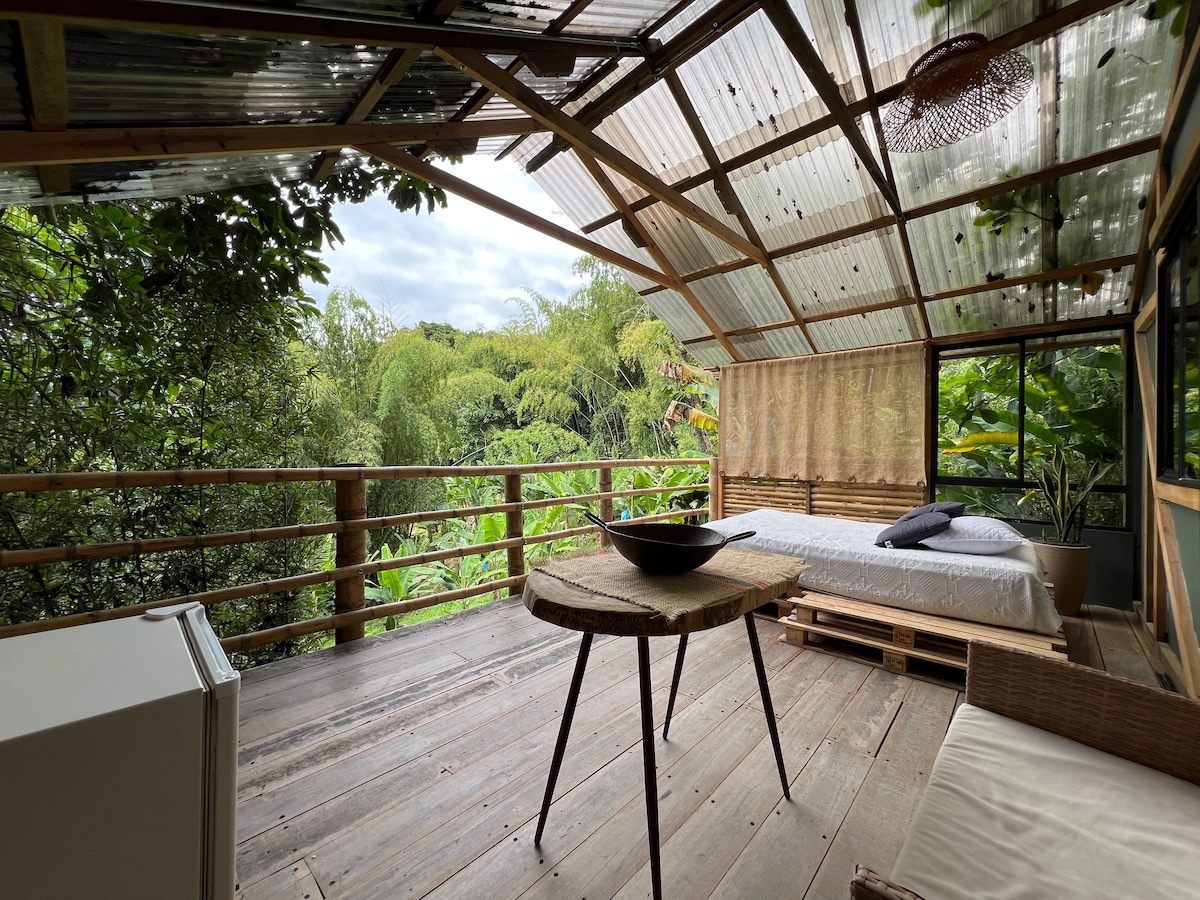 Nahaja se v kavni regiji, v andskih gorah Kolumbije v Južni Ameriki, očarljiva koča iz bambusa, z odličnim razgledom in »sendero« ali potjo skozi bambusov gozd, ki prečka našo ekološko kmetijo s površino 5 hektarjev in vodi do potoka. Prostor za sprostitev in druženje z naravo. Upoštevajte, da je navedena cena za eno osebo. Ko zahtevate kočo, izberite pravilno število gostov. Drugi gost plača dodatnih 20 $ na noč. Zajtrk je vključen.
