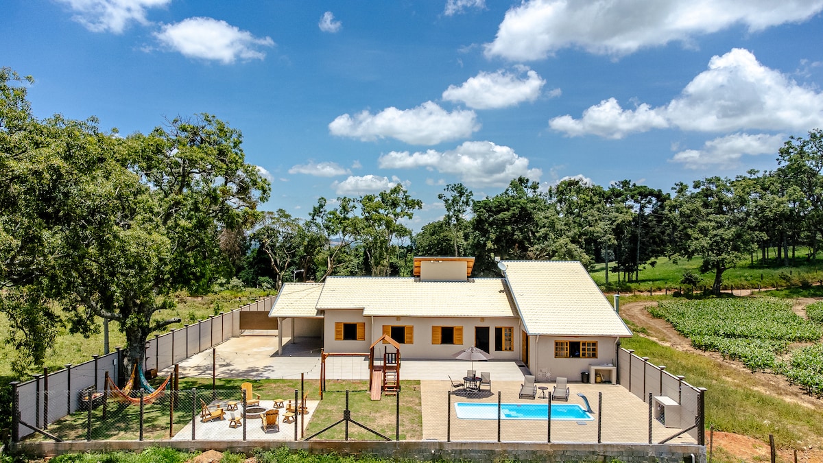 Casa de campo com Espaço Kids, Piscina e Montanha