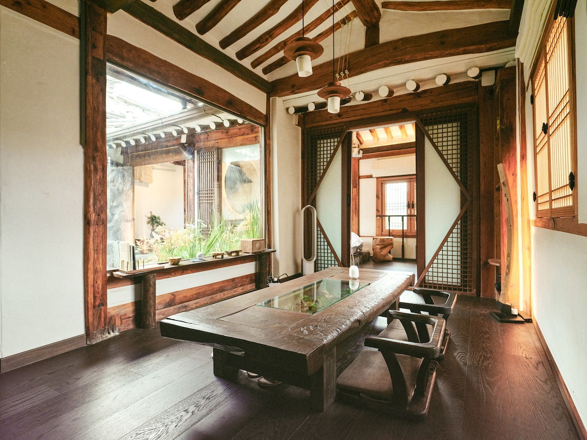 - 1929년 지어져, 3년 전 리노베이션 한 96년된 전통 한옥입니다. 한옥의 100년을 시각적으로 표현하고자 다양한 시대를 대표하는 동서양의 디자인 가구들로 채워 놓았고, 오래 전부터 이 집에 있던 고재와 부속품을 최대한 살려서 복원하였습니다. - 역사와 전통의 중심지. 유명 관광지 도보 여행 가능 - 24시간 편의점과 공항버스 정류장까지 도보 5분 이내, 지하철역까지 도보 5분 거리. - 숙소 바로 옆에 서울의 레스토랑/카페/쇼핑 상점이 수백개 있습니다. - 수하물 보관/공항 픽업 가능. - 초고속 인터넷 와이파이, 유튜브 / 넷플릭스 프리미엄 시청 가능 - 조용하고 편안한 분위기 : 서울의 중심부에 위치해 있지만, 한옥 안에 들어오면 마치 시간 여행을 온 듯 놀랍도록 조용하고 고즈넉한 분위기에 놀랄 거예요. - 각 공간의 매력을 천천히 즐기시면서, 나와 소중한 사람들의 좋은 추억을 만드시고 잠시나마 몸과 마음의 피로를 회복하는 시간 되시길 진심으로 바랍니다.