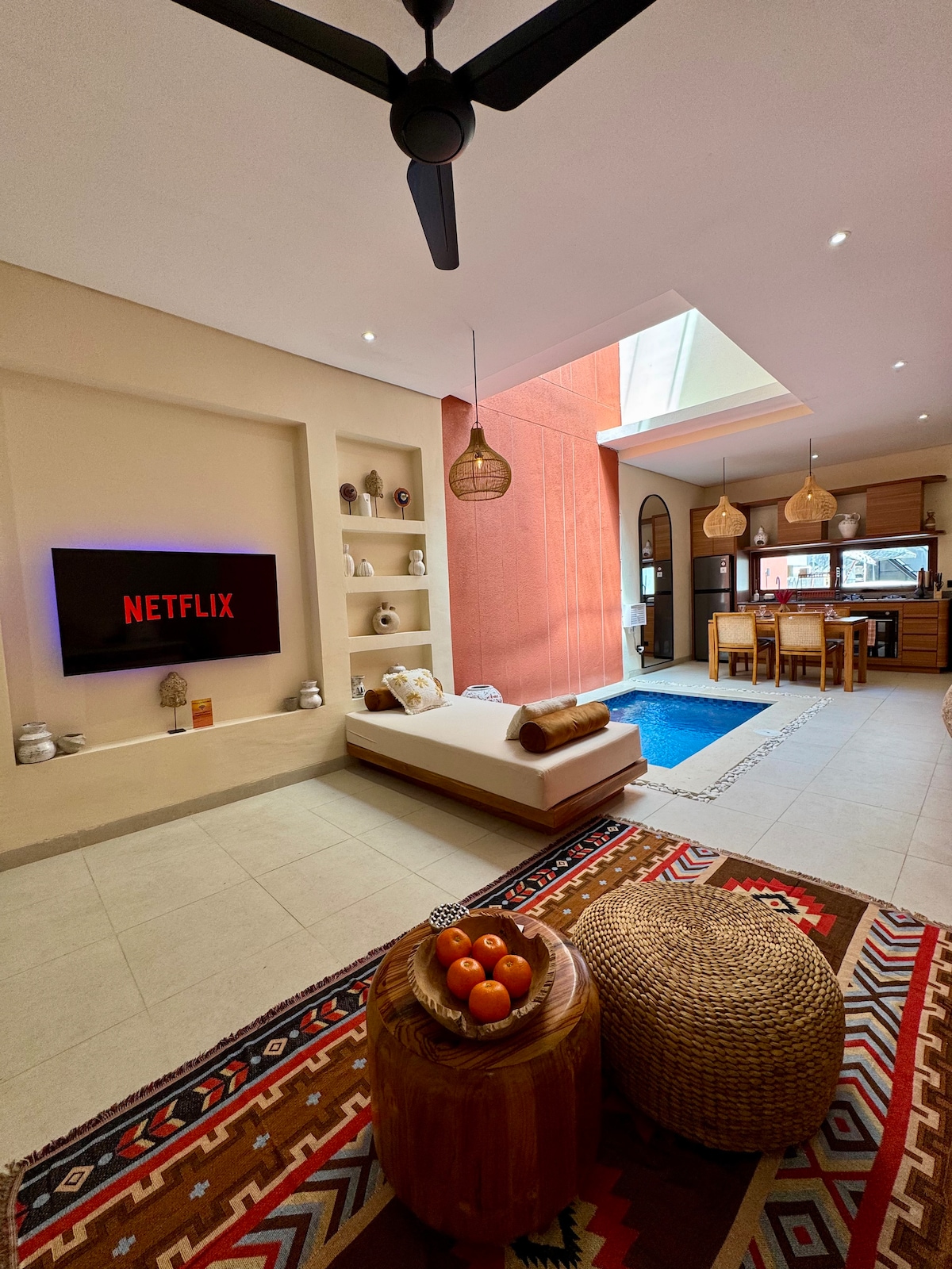 Located on the ground floor of a two-story complex with two independent units, is a fully independent mini-villa perfect travelers who value privacy and comfort. Set in a quiet residential area away from traffic and noise, it features a small private pool, a small kitchen, a beautiful bathtub, starlink and TV. The king-size bed is extremely comfortable and the space feels calm and cozy. Just minutes from Dreamland Beach and 5–10 minutes from the best cafés, restaurants and gyms.