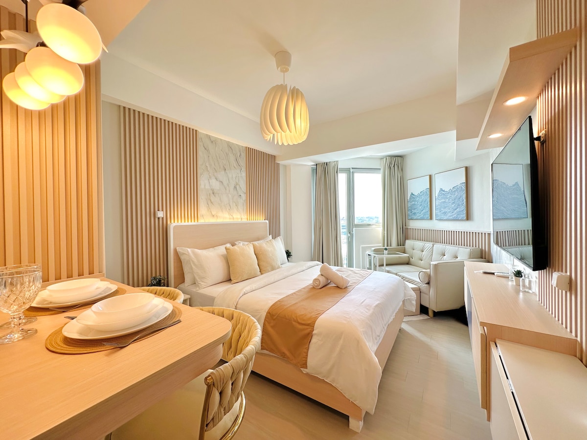 𝐏𝐑𝐎𝐌𝐎: 𝐅𝐑𝐄𝐄 𝐁𝐅𝐀𝐒𝐓 𝐅𝐎𝐑 𝟐 𝐓𝐇𝐈𝐒 𝐀𝐏𝐑𝐈𝐋! 🍳 Our Bali-inspired studio offers breathtaking views of the man-made beach from the private balcony. This studio comes with queen size bed for Netflix & chill, fully-equipped kitchen for home-cooked meals and lots of entertainment like PS4, karaoke and boardgames. Nearby attractions: • 5mins drive to SM Pampanga, Robinsons and S&R • Close to cafes & restaurants • 35mins away from Clark International Airport