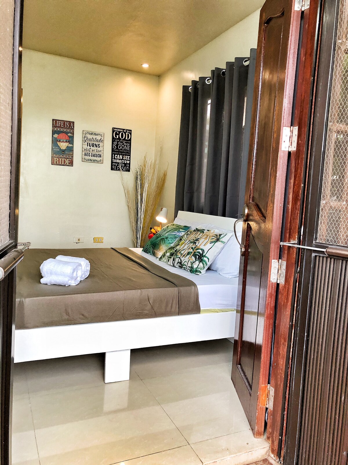 Terry-Torrie Staycation❤️ Cene bivanja (22 ur) P 1.500.00 delavniki/vikendi (2 osebi) 250,00 P per head additional pax (max of 4 addt 'l pax) Brezplačni otroci, stari 6 let Vključuje: -1br stanovanjska enota (klimatizirana) - Wi-Fi 200 mb/s z Netflixom in Primeom -55-palčnipametni televizor - Dvojna postelja - Kavč Jedilna miza - Hladilnik - Indukcijski štedilnik -Električni grelnik vode -Kuhinja in pribor - Prha in toaletne potrebščine - brezplačna voda, - brezplačen zajtrk za 2 osebi (Addit'l zajtrk za 150 pesosov) -Honesty Store